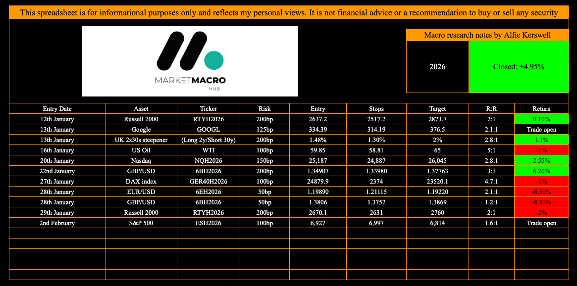 So here’s how I see things: we are structurally supportive of the upside in equities, but positioning does not favor me being long here. Much has shifted since Friday, and I think a small top-to-bottom drawdown of 3-5% makes total sense. I’m targeting the low side (-3%), but it will be key to watch the 2s10s and 10s30s to see how they react across the next trading week.