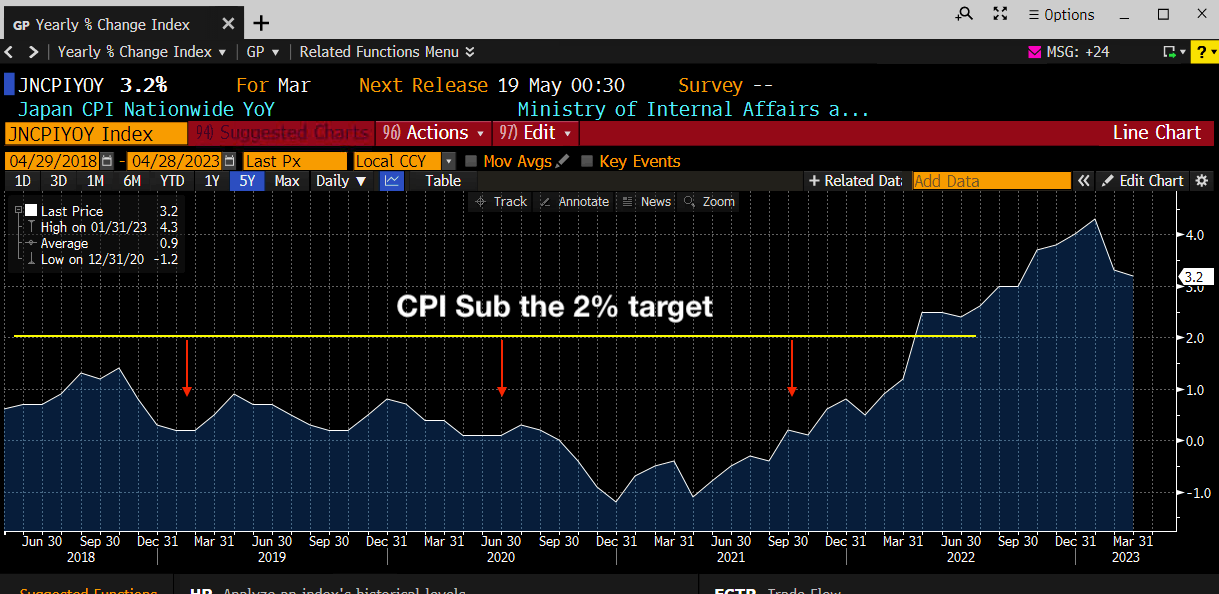 But, my view still stands, the BOJ’s policy is a ticking time bomb, with new leadership in the form of Gov Ueda, I’m constructive on the view that upon reviewal of the current BOJ policy, he will outline a roadmap to normality, first within the JGB market, as the yields have been manipulated to serve the purpose of lower borrowing costs.