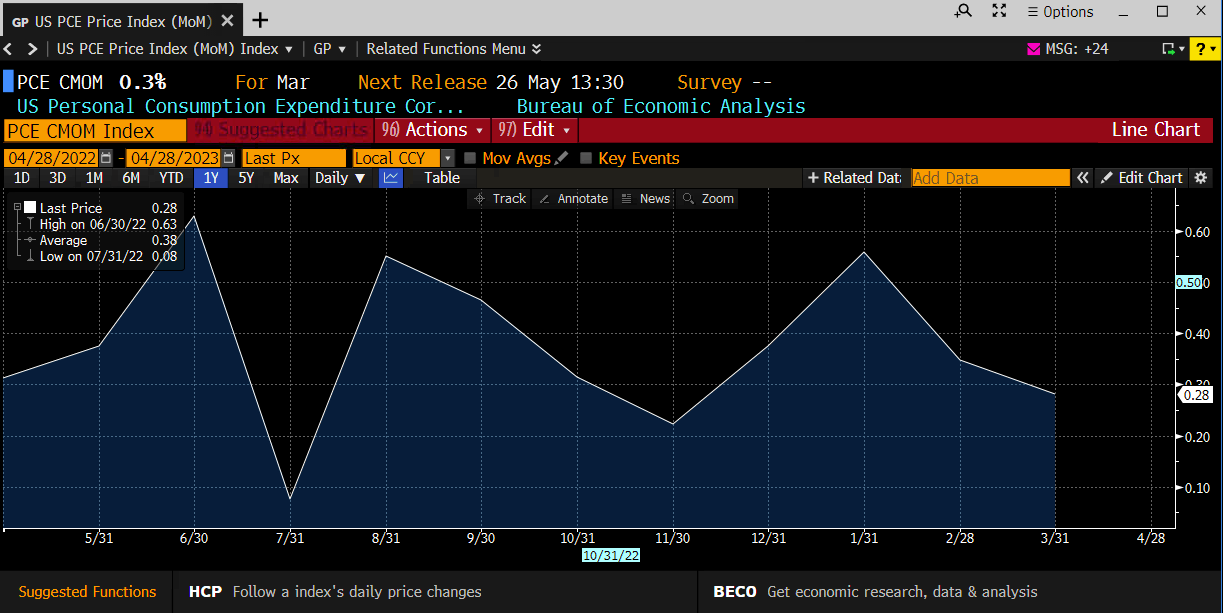 For the second month running Core PCE rose by 0.3%, at this point, the only thing this is instilling is a further conviction for the Fed to go ahead and hike rates further than the upcoming May meeting.