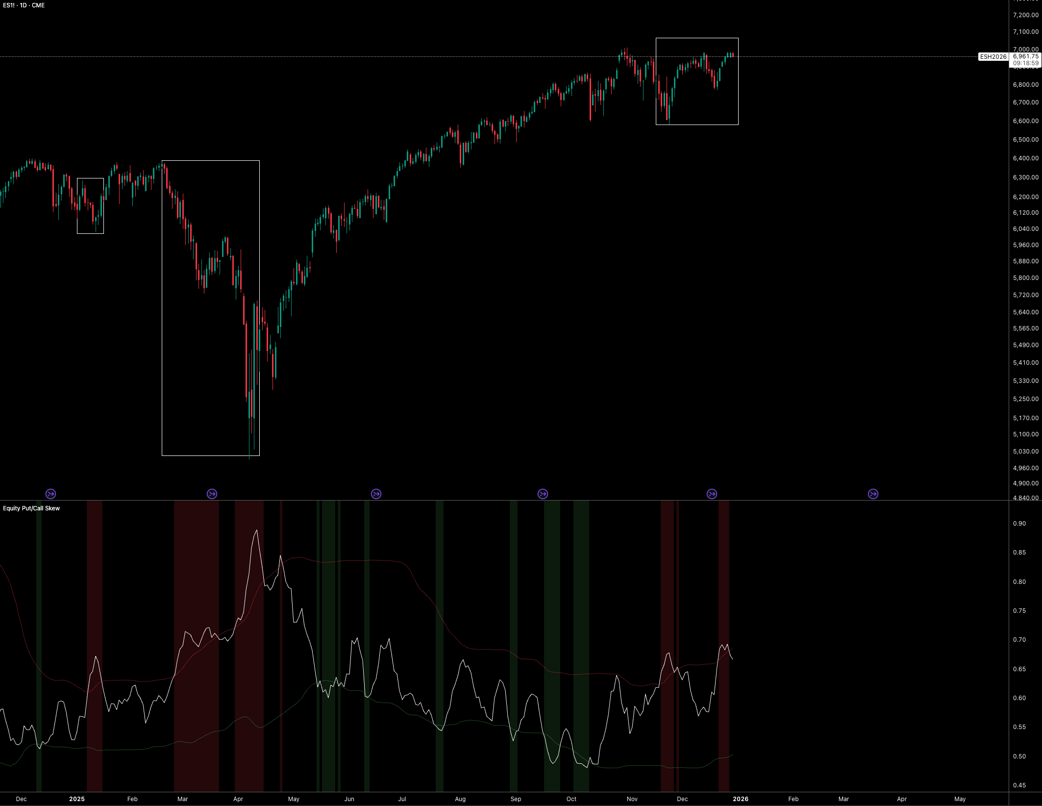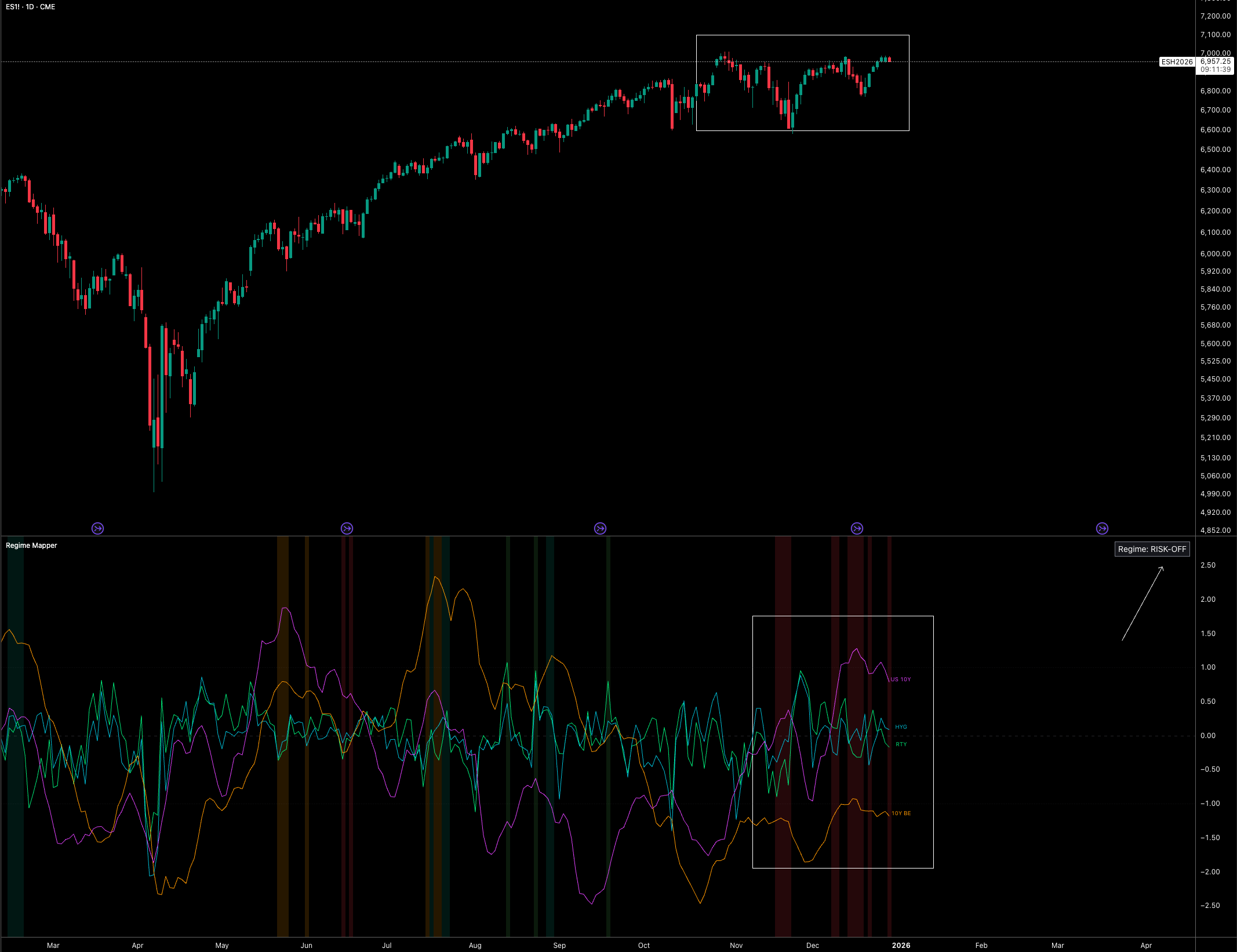 Alongside that, I expect real rates to trend lower, supporting liquidity that will be transmitted into equities (although I know this isn’t a direct relationship). With that framework in mind, the focus now shifts to the key signals that are pointing to where ES is heading next.