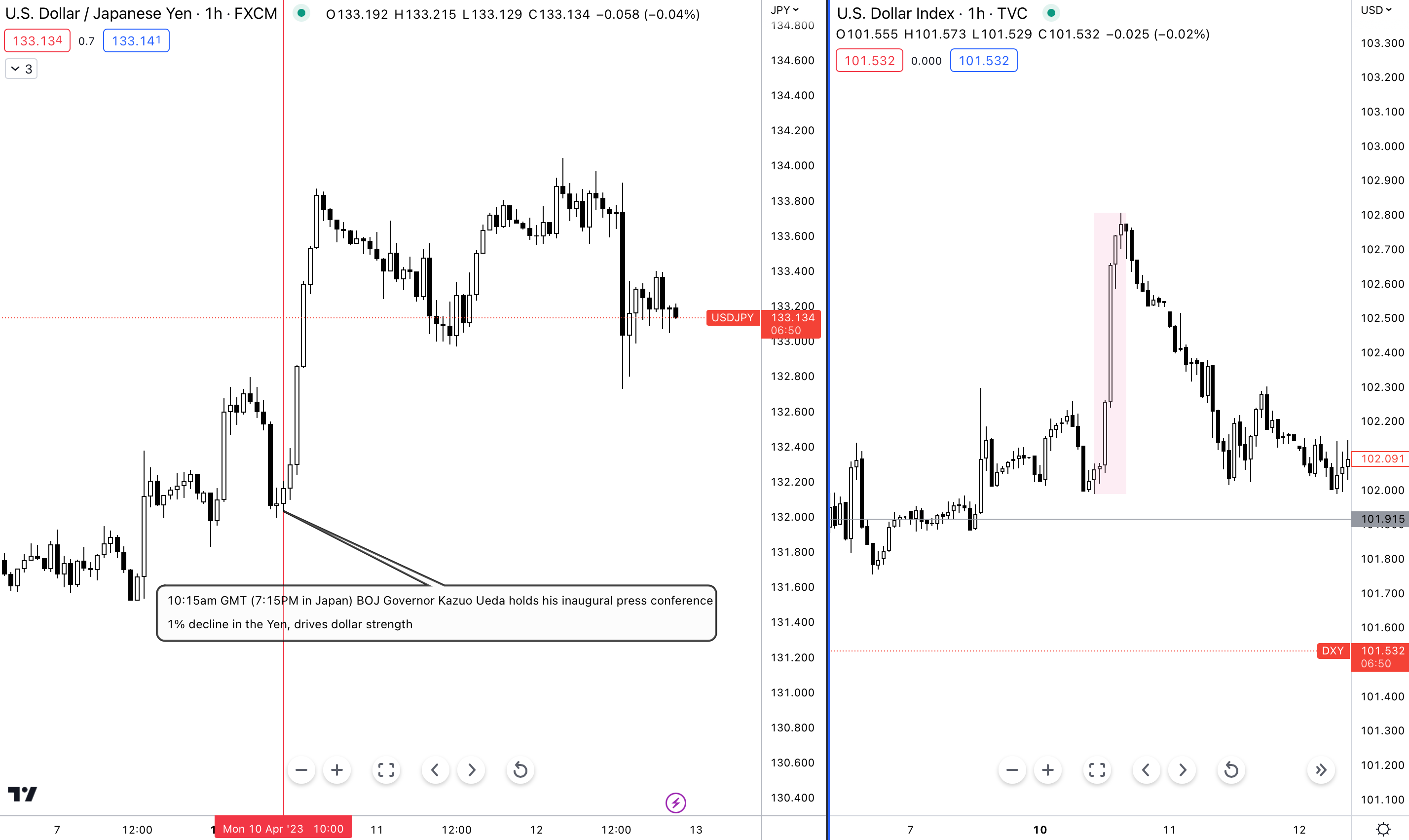 It’s rarely ever what happened but more so what was said, remember that. Governor Ueda triggered dollar strength and immediate weakness in the Yen after his comments where he said: