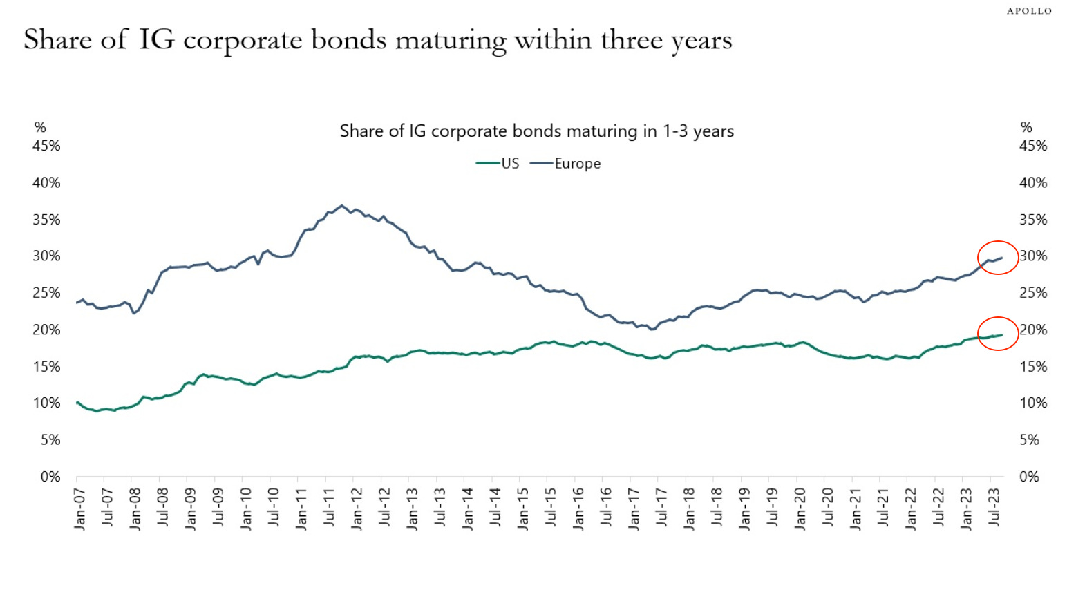 For private sector corporations, the story is much of the same. Companies can withstand the effects of higher interest rates until they reach their refinancing cliffs and capital-raising deadlines. For many US firms, these deadlines are still a long way off.