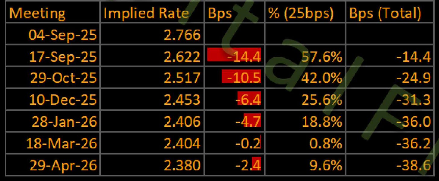 On the macro front, the BoC finds itself in an uncomfortable position mix of deteriorating labour market with UR at 6.9% and GDP figures contracting 1.6% annualised in Q2 against the -0.7% expected. As tariff policies get cemented and global uncertainty trades off its peak, we are seeing the ‘strength’ from Q1 figures fade off.