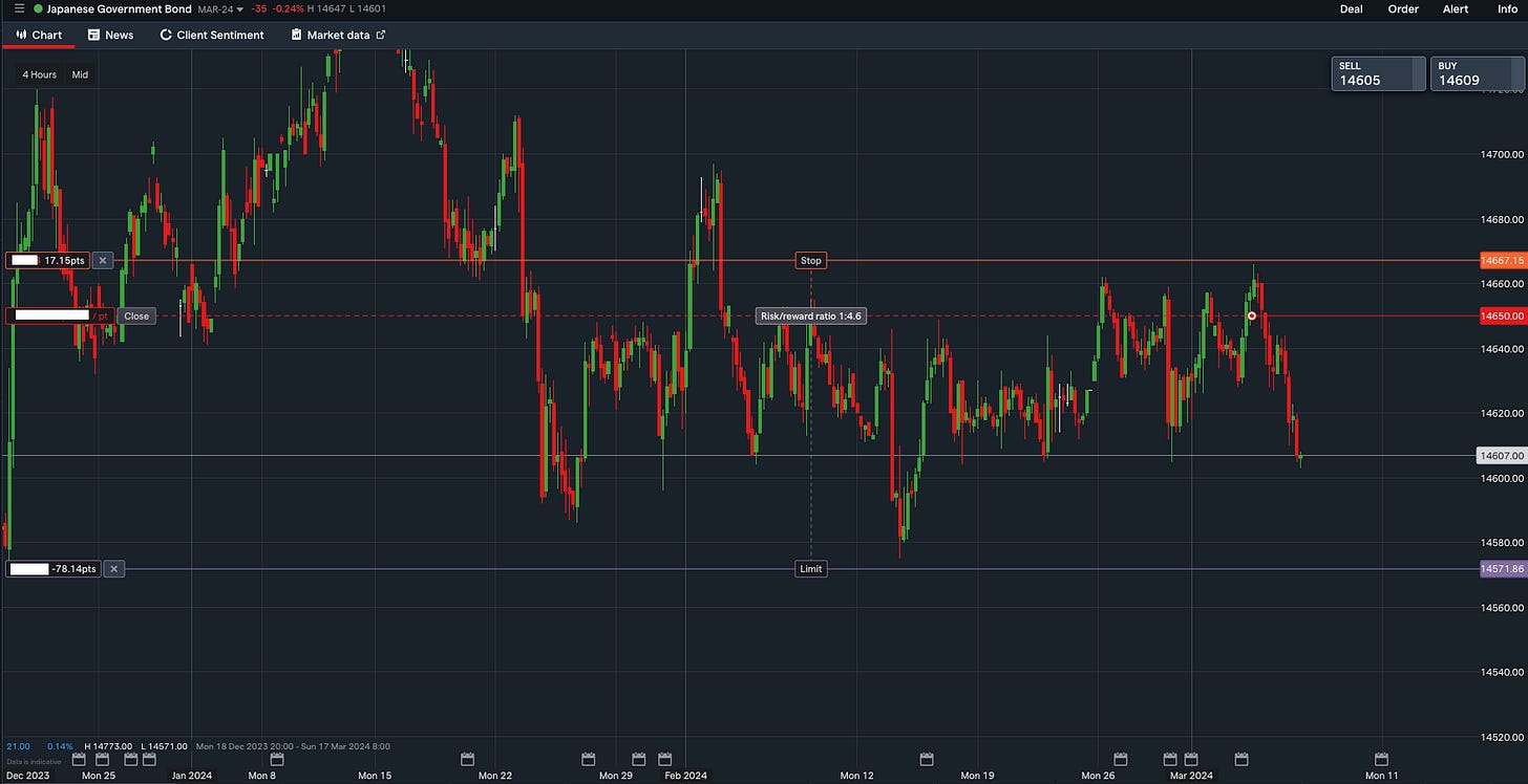 I’ve got limit orders waiting to be activated on Dollar Yen, whilst I currently hold my shorts on JGB futures as seen in Figure 3. My position on JGBs looks to exploit price movements leading up to and after the Shunto wage negotiations where I expect the BOJ will hint further at their March 18th meeting the plan to remove negative rate policy.