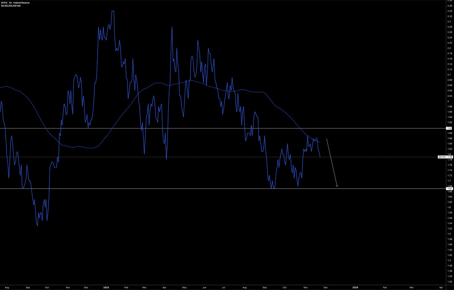 For copper exposure, the danger zone starts if real rates grind back toward 1.9% and hold there. But the setup right now points lower, back toward this year’s floor and probably below 1.7%.