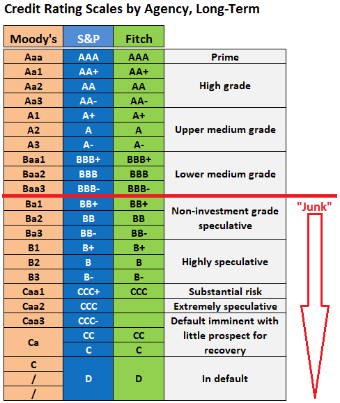 The catch is, the lower investment grade the bond is, the less allocation the institution is allowed to make, due to risk levels associated with the investment. So for corporations a simple downgrade from AA- to A+ (S&P rating)significantly decreases the liquidity and capital they can raise as banks/pensions funds/insitution’s have to rethink their portfolio allocation due to the credit worthiness and rating changing.