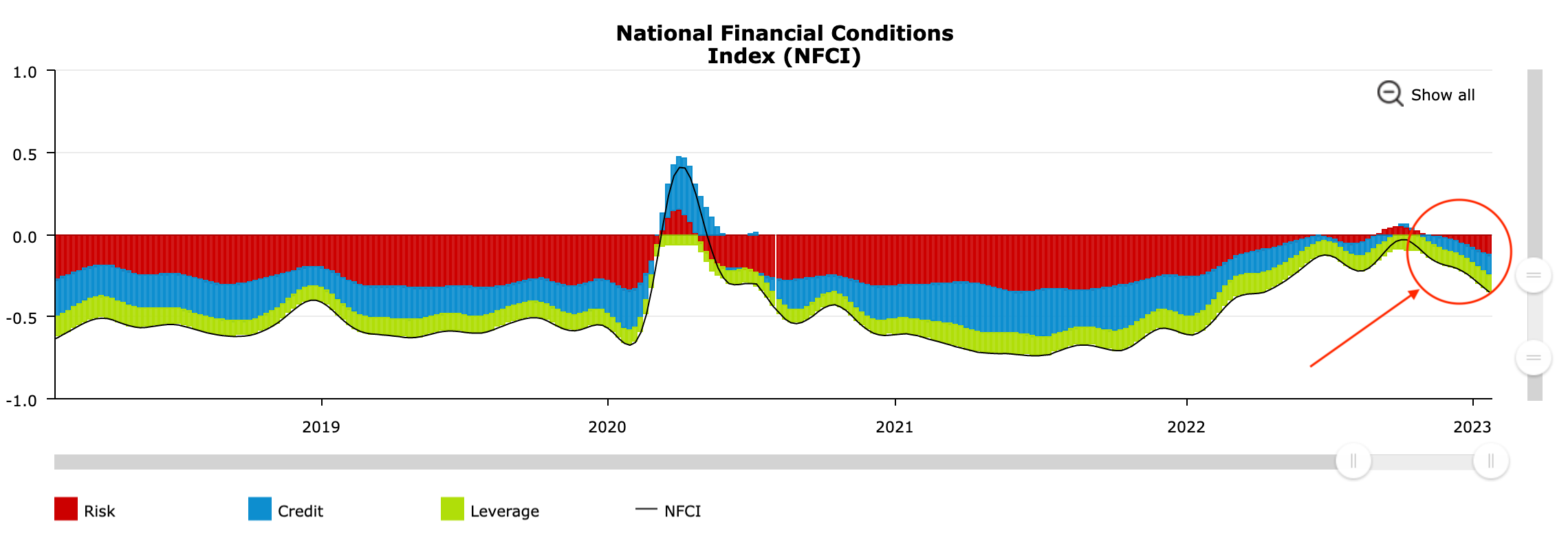 Well let’s take a look at one of my favour indexes, the NFCI (National Financial Conditions Index).