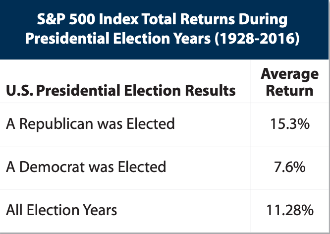 What does this mean? Politics has a huge impact on markets, but the overriding macroeconomic climate carries greater weight and influence on how investors perceive US asset markets and therefore the performance of the index.