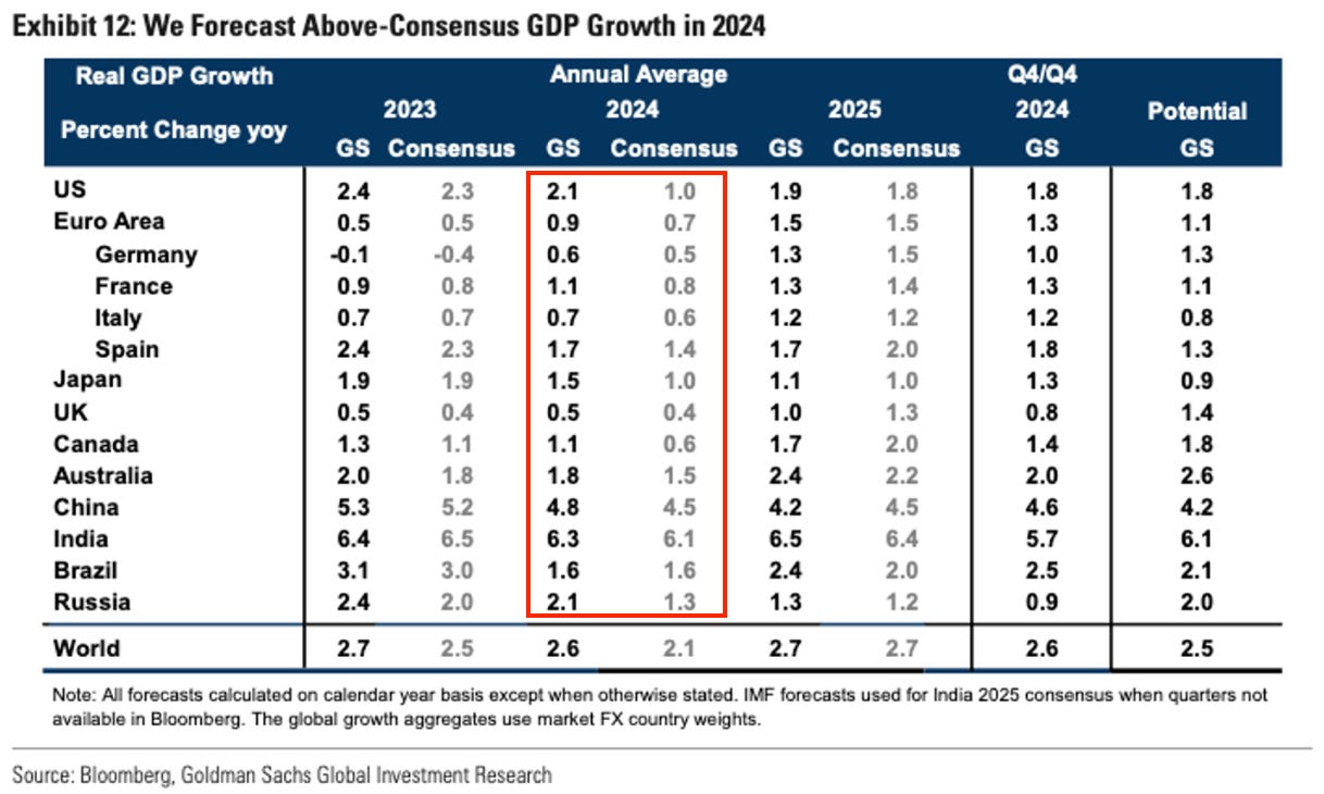 GS forecasts the US to grow 2.1% across 2024, when compared to the Euro Area, UK, Canada and Australia, the US is positioned to be a destination for additional cross-border fund flows. Cross-border fund flows represent the movement of global liquidity, in this case as in any, when US growth is strong, investors expect outsized returns and demand US dollars to invest in US assets resulting in a strong dollar. Although this scenario carries the greatest probability, my view on the dollar is bearish despite the strong growth outlook of the economy.