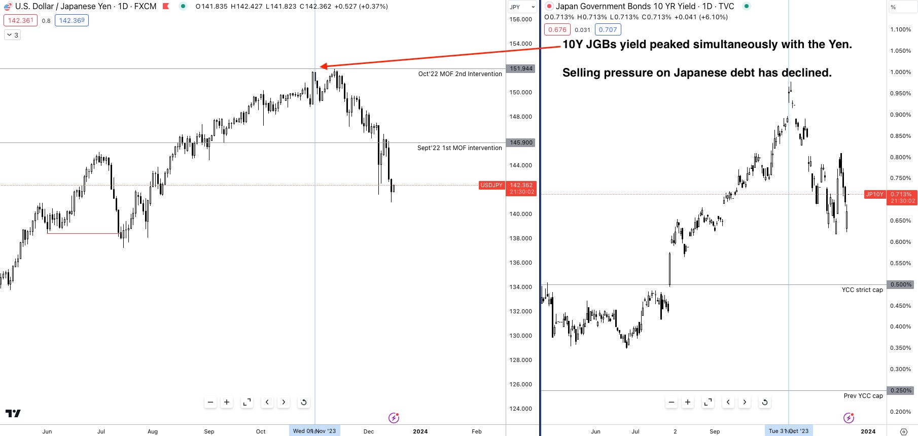 While the timing of any potential BOJ rate cut remains uncertain, it’s evident that the yen will be in a compelling long position heading into 2024, as the prospect of a rate hike and a significant shift in BOJ policy looms large.