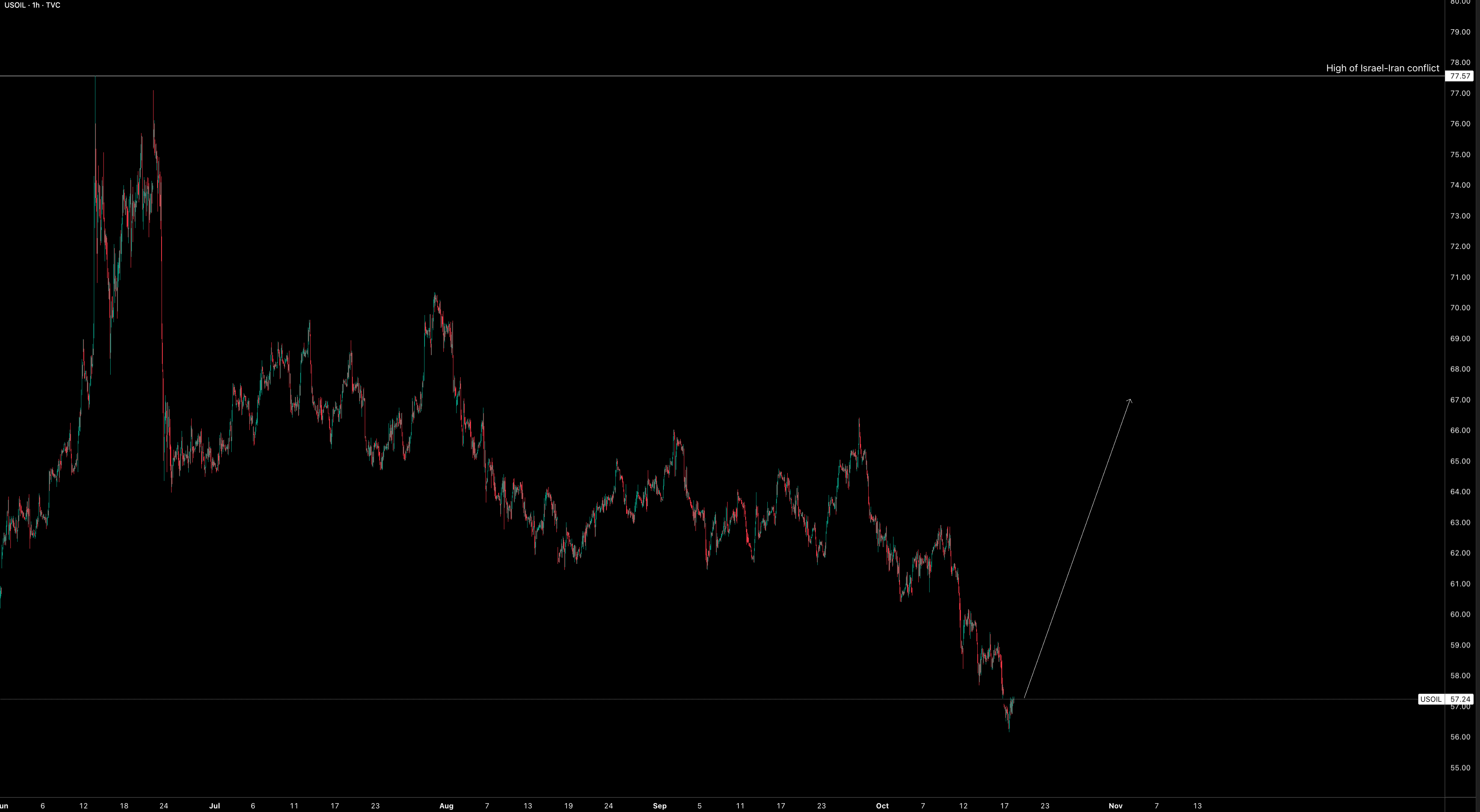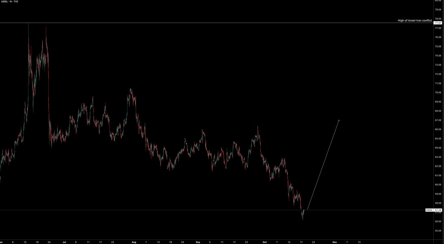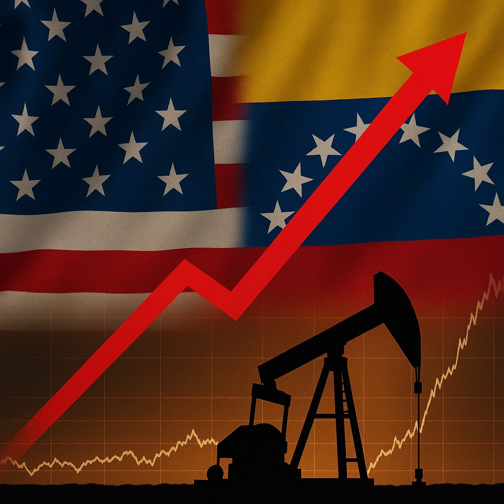 If the U.S.–Venezuela confrontation graduates from maritime strikes and covert ops to a sustained campaign, the first transmission mechanism is energy. Venezuela’s exports are mostly heavy/sour barrels so any disruption or tighter sanctions risk widens heavy vs light spreads (think Maya/WTI, Mars/WTI, WCS/WTI) and fattens U.S. Gulf Coast coker margins (how profitable it is for refinery) as refiners scramble for replacement feedstock. That typically pulls Brent and WTI higher, narrows WTI–Brent when U.S. imports tighten, and inflates diesel cracks given heavy yields. Shipping insurers would re-price Caribbean lanes, lifting freight rates and adding another premium to delivered prices. The idea here is that oil will spike hard as sanctions and disruptions come into place. Taking a look at the chart below, $67 would likely be easy to move past in oil, although I don’t think we’ll reach the highs of the Israel-Iran conflict in oil prices because Iran’s pruction is 3 million barrells per day which is 10x bigger than Venezuala. I think $67 is fair given the way oil reacts to these tyopes of tensions too.