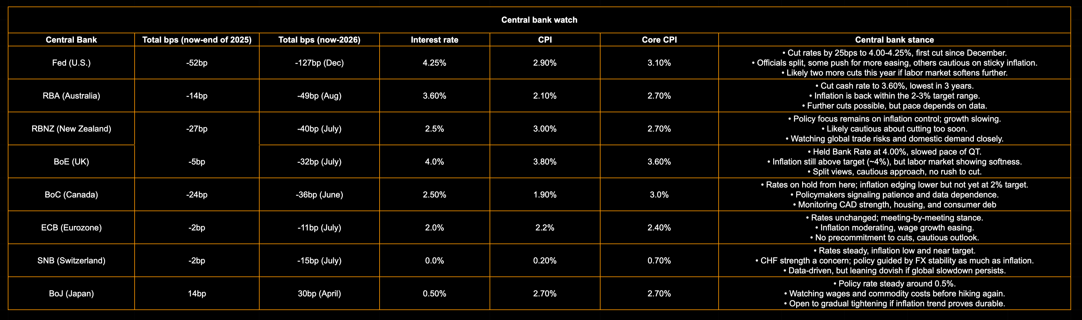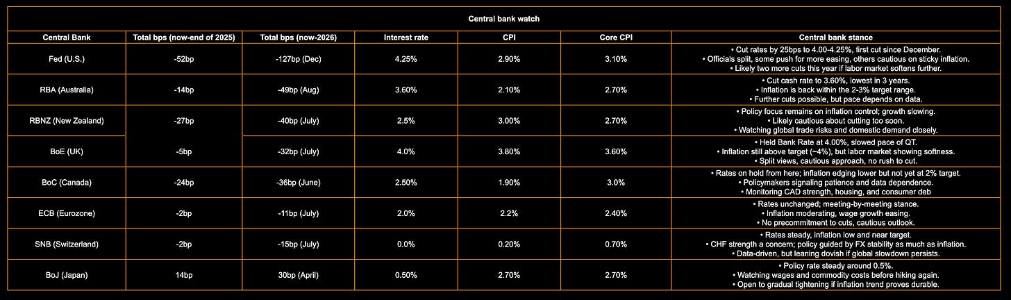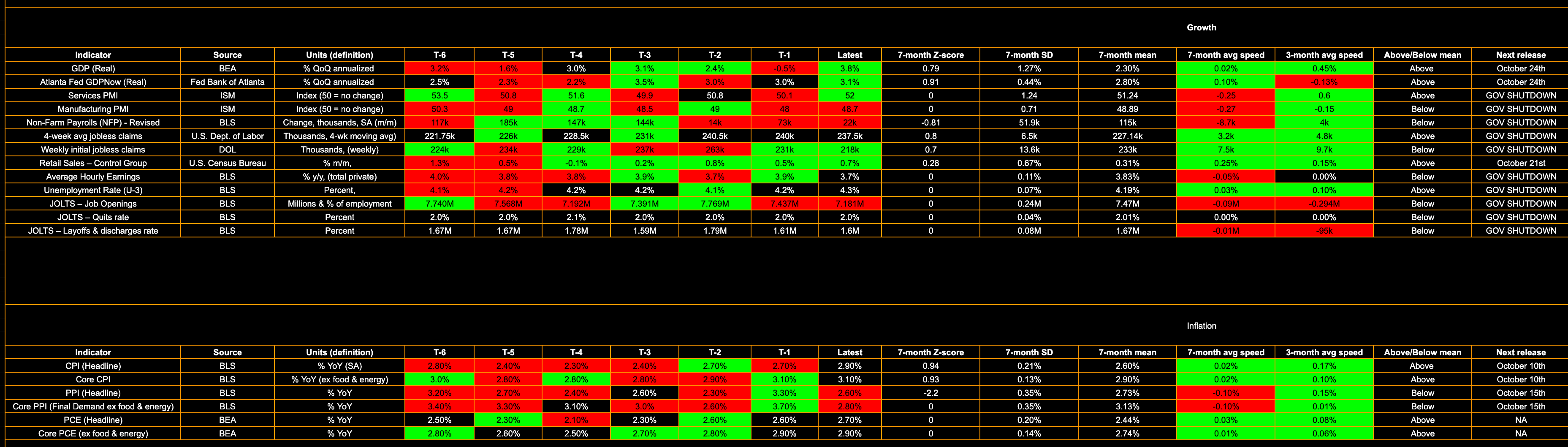 The broader “weirdness” lies in how markets are digesting policy risk. Investors appear comfortable pricing deeper rate cuts under a JP-led committee, less under a potential Trump-led appointee come May of next year, even as concerns grow about the Fed’s institutional independence. Paradoxically, that optimism remains anchored to the Fed’s September forward guidance and aided by the low coverage of key macro data in the midst of this shutdown as we question the state of the labor market and worry less about the inflationary timeline from tariffs.