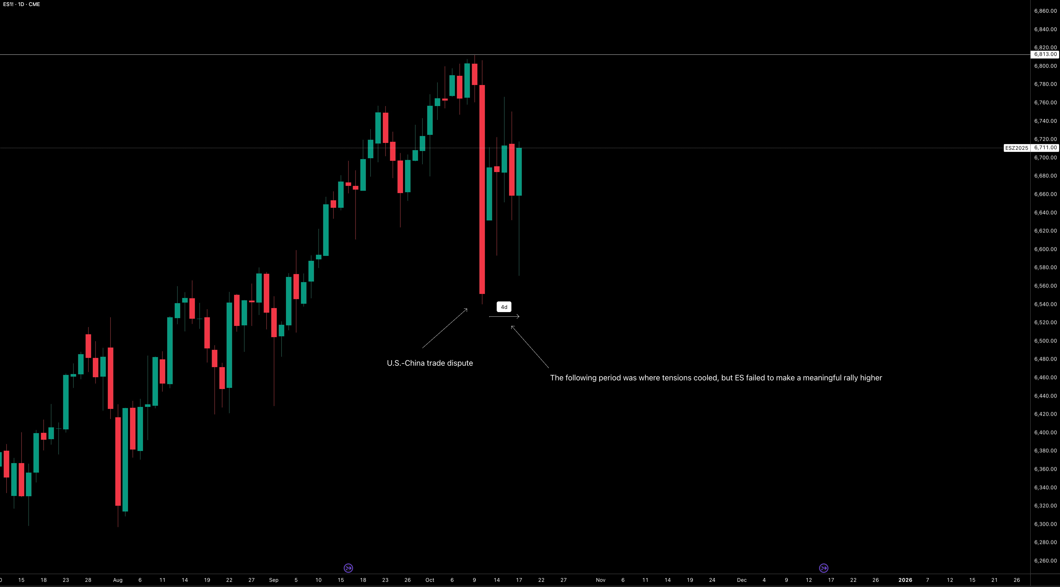 Crucially, if ES fails to make a new ATH within the next two weeks, it could add further downside pressure to equities, especially against the backdrop of renewed tariffs and lingering geopolitical headwinds.