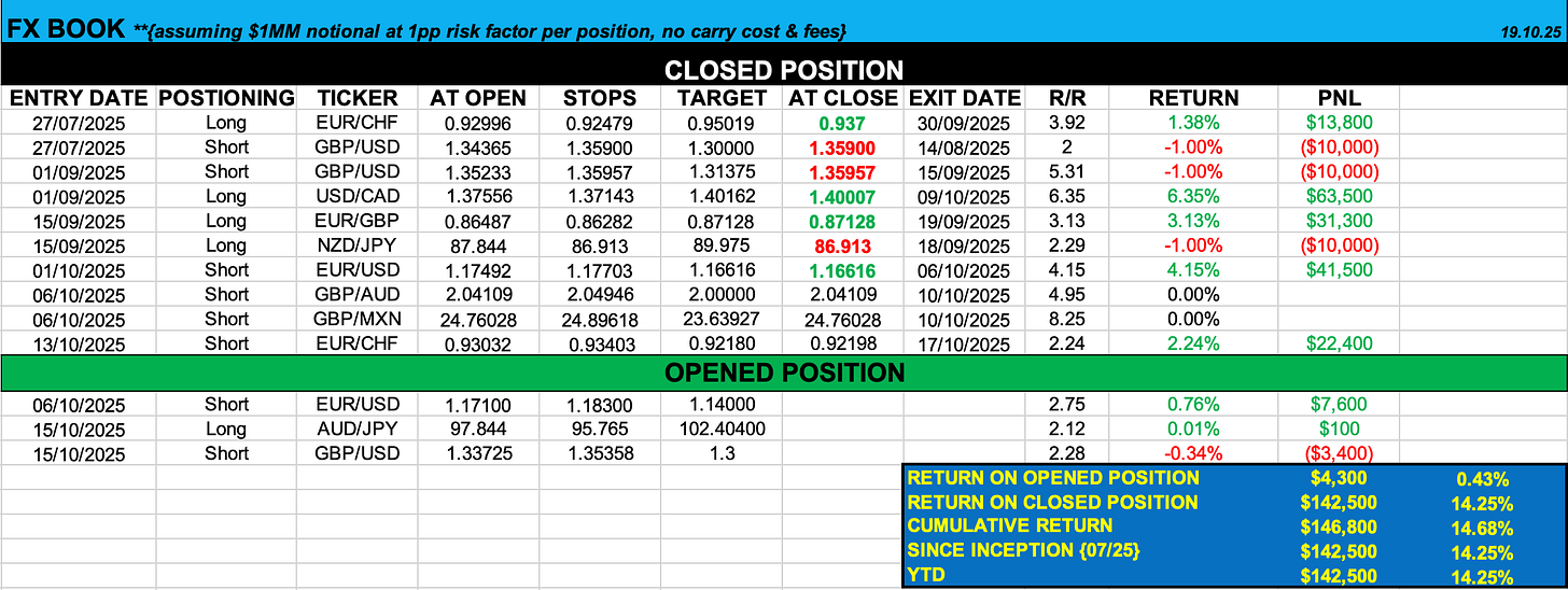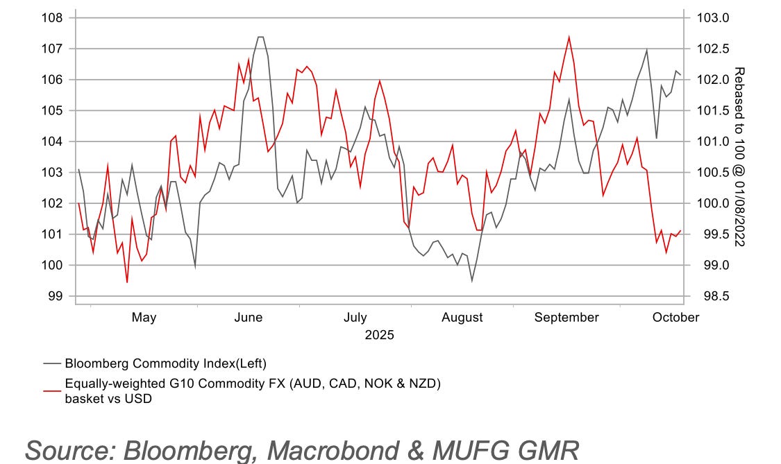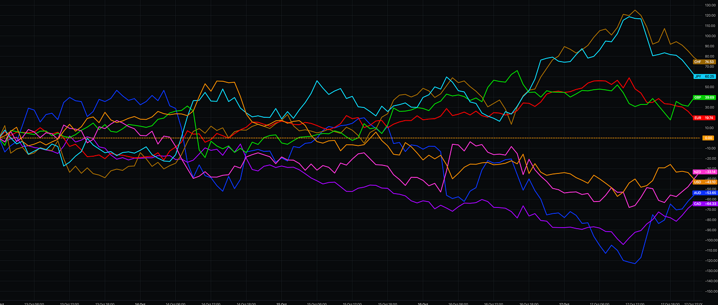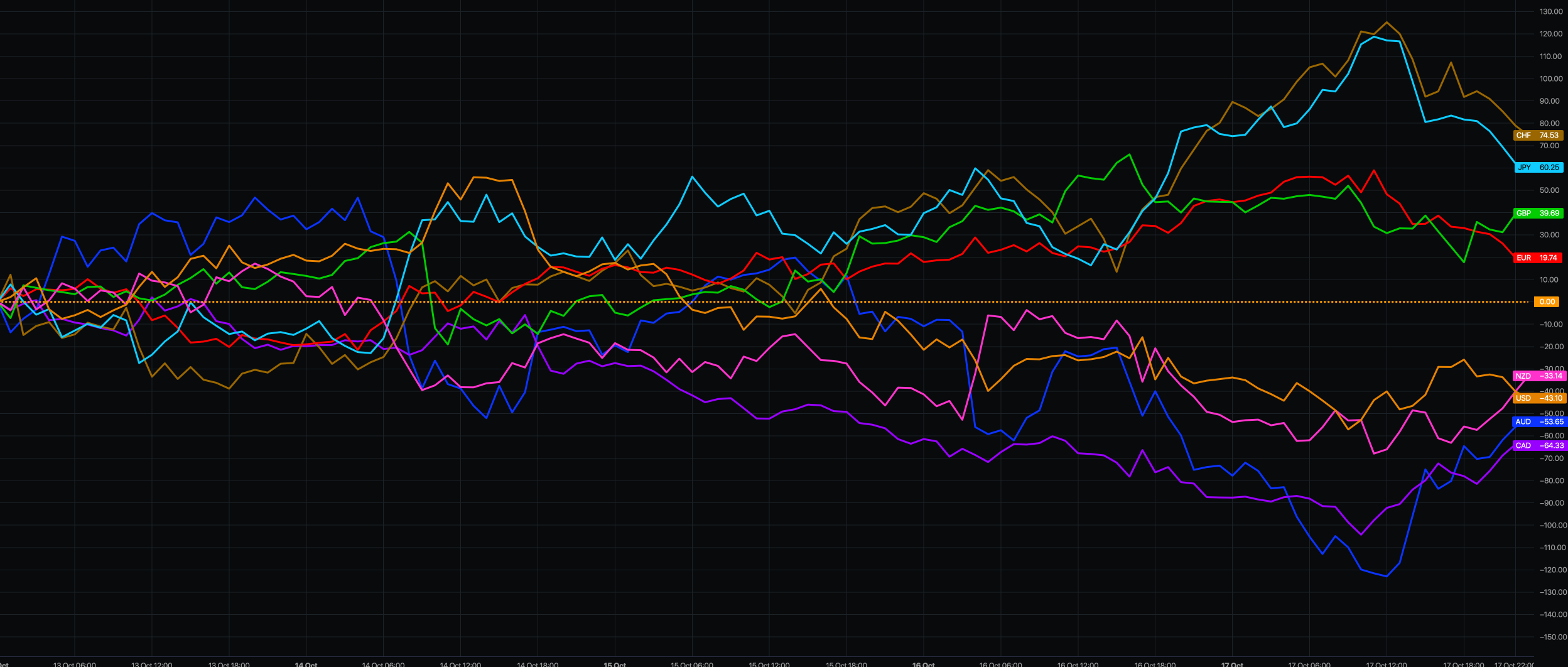 Keep it simple. In this scenario, own CHF, JPY. Sell AUD, CAD, and NZD. Selling commodity-linked ccy should provide some upside. Layered on top of that, the domestic macro backdrop of both antipodes has turned a bit sour. The RBA might be contested to follow suit with its neighbor RBNZ following the upside surprise in its recent employment figures last week (4.5% vs. exp. 4.3%) with -19.5 bps already priced in for the November 4th meeting. It’s unclear if this would be met with any pushback. For one, despite the UR headline miss, other metrics such as employment figures rose by 14.9k for the month, although a miss in expectations, has now turned positive compared to the previous month along side up shoot in business confidence keeping broader outlook scope optimistic as its economy still battles risk of an inflation reacceleration particularly in the services sector.