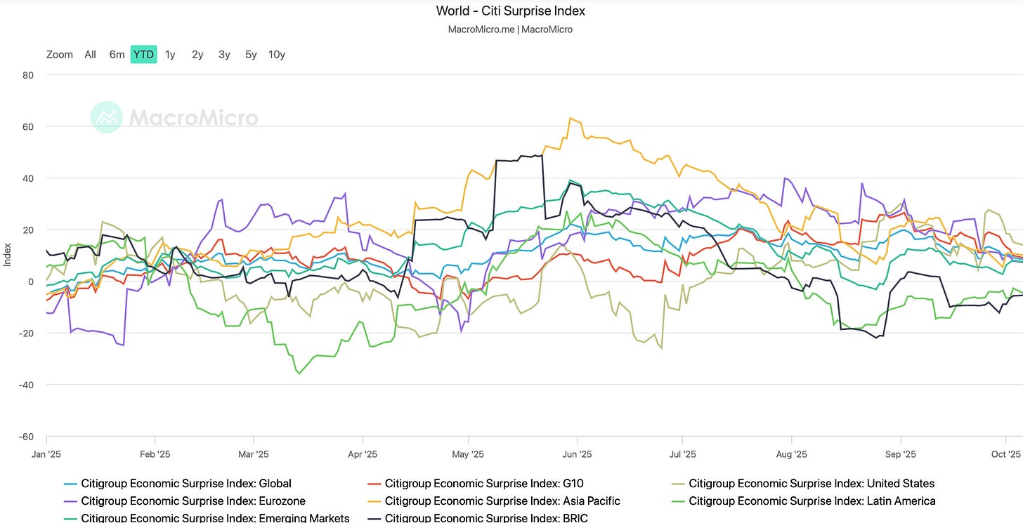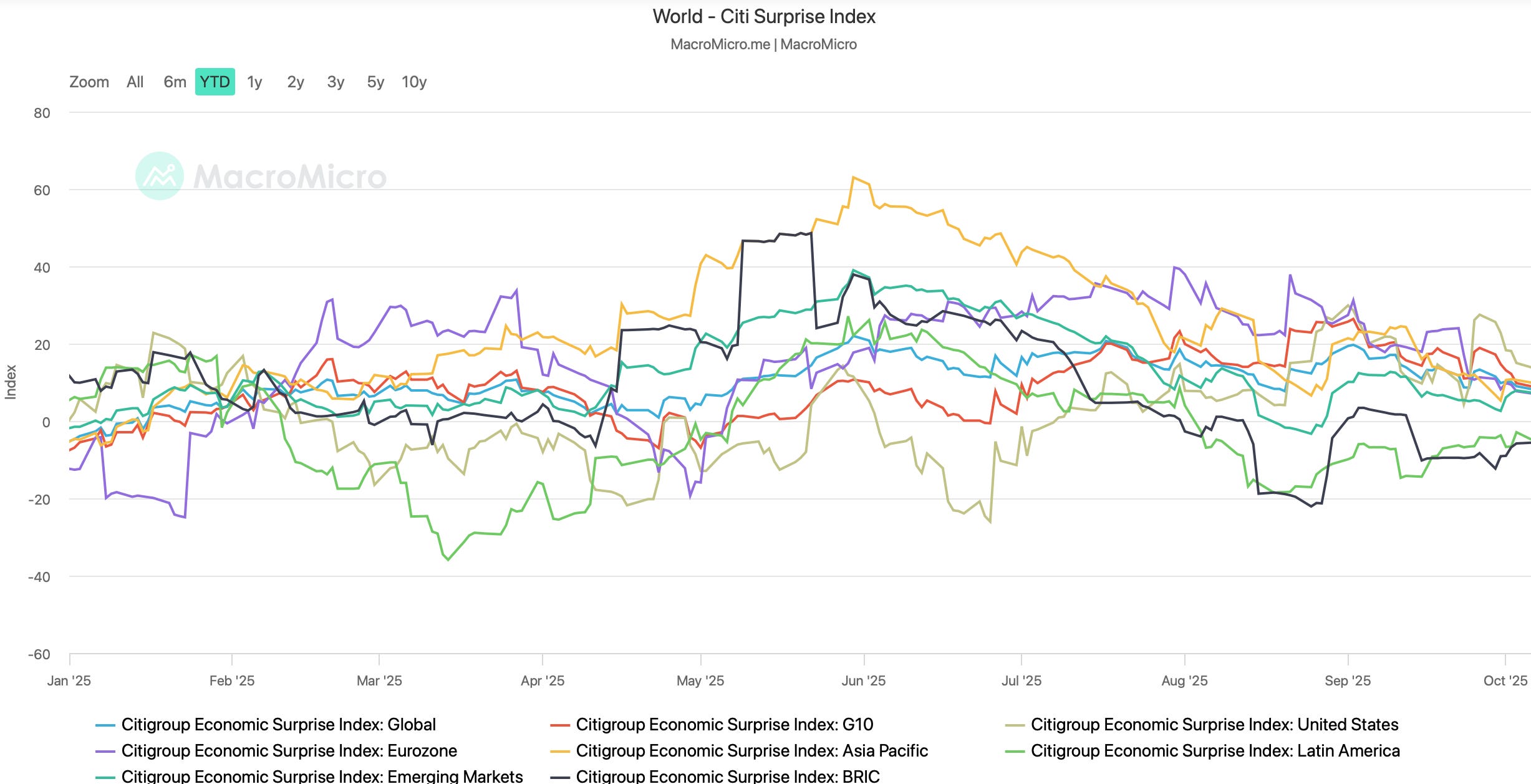 The latest Fed Beige Book painted an economy that’s mixed at worst and optimistic at best. Activity across most districts was described as “little changed,” with stable employment and resilient spending among higher-income consumers offsetting softer demand at the lower end. Wage growth has cooled, but firms remain reluctant to cut staff, suggesting labor markets are easing rather than cracking. Price pressures linger from tariffs and supply disruptions, yet not enough to reignite broad inflation fears.