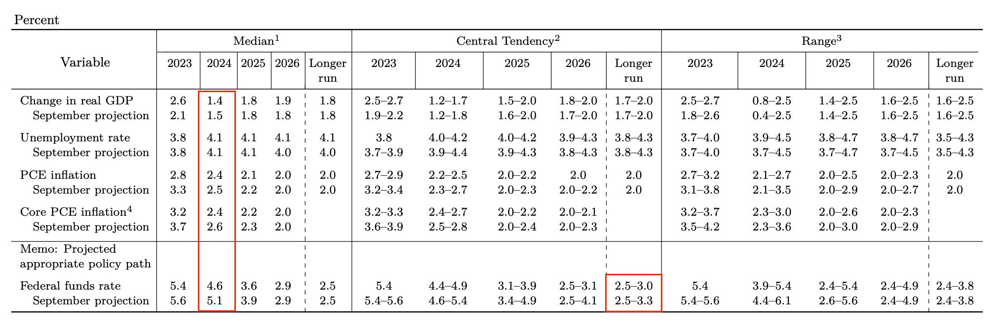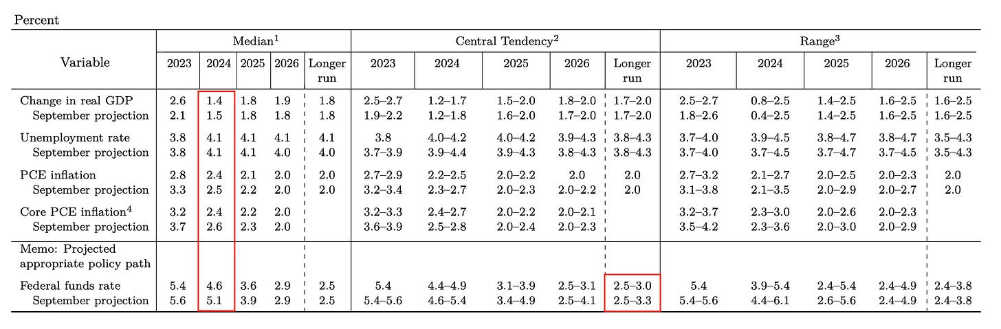 When observing the changes in the SEP projection material, the Fed has shown an uplift in expectations that core PCE will decline to 2.4% for 2024, down from the 2.6% projection in September.