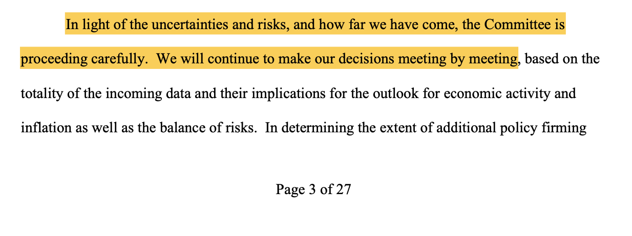 “We will make decisions about the extent of any additional policy firming and how long policy will remain restrictive based on the totality of incoming data”
