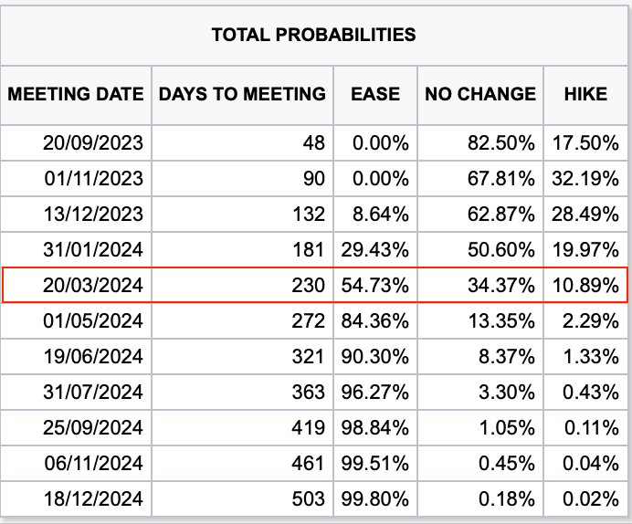This table might be easier to show exactly what the market is expecting.