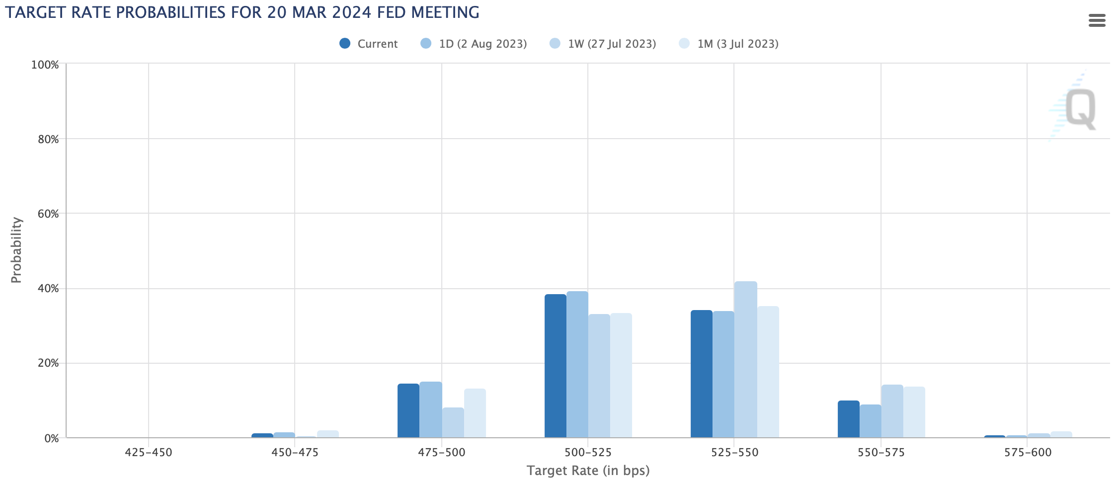 Let’s take a look at the Fedwatch tool and the UST curve.