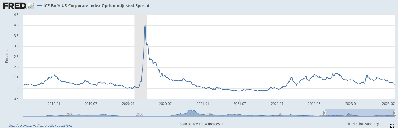 As you can see conditions for corporations are slightly elevated but I believe to really put the inflation tale to bed further restrictiveness for corporates would seal the deal.