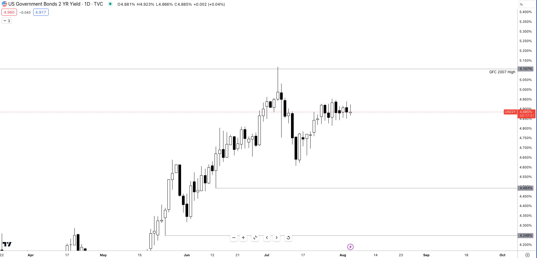 4.600% on the 2Y is a structural low made in July, which we can expect to see over the coming months.
