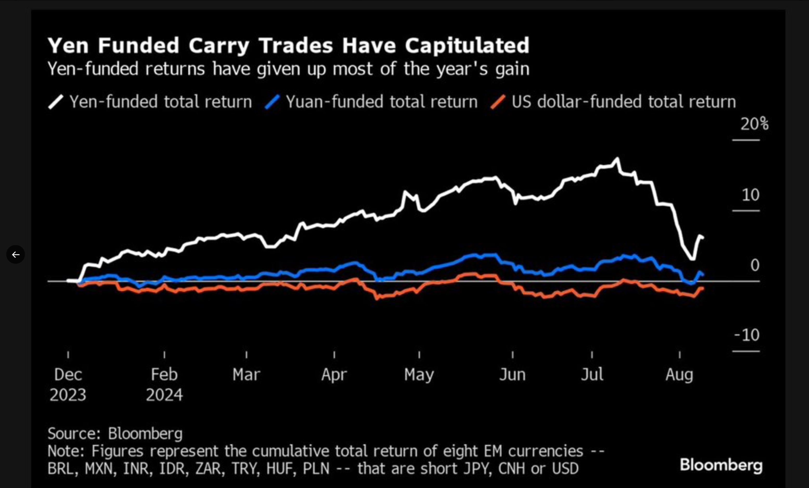 Figure 7 clearly represents investors are pulling the plug on some of their Yen borrowing which also means pulling there plug on those investments. That now gives clarification to me that the equity sell-off was dominated by the unwind of the carry trade