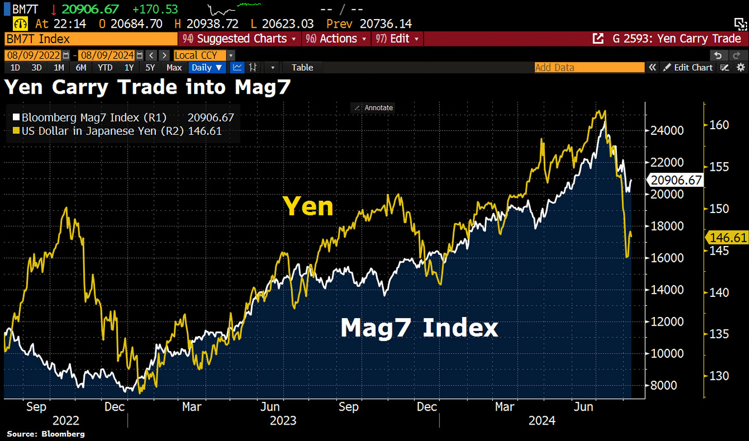 The Mag7 refers to a group of the most influential tech companies in the US stock market, stocks that would’ve been heavily invested in with capital from Japan. Now, as the carry trade further unwinds and the BoJ’s monetary policy gets tighter, equities could see a further sell-off and reallocation into economies like China (for the reasons explained above) could be the play.