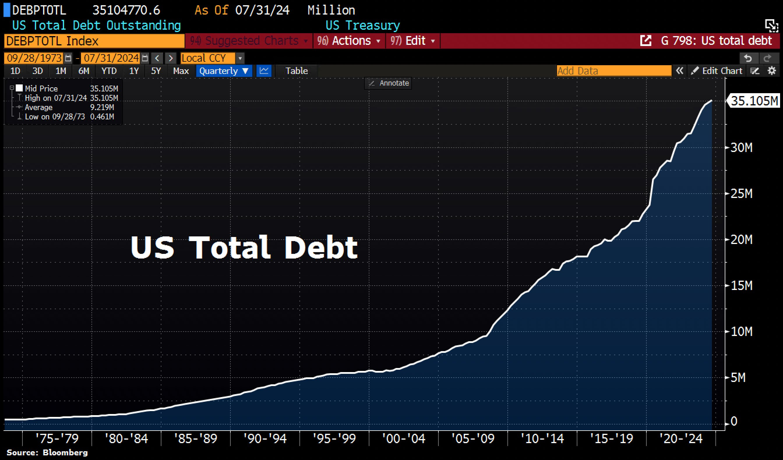So, when investors are allocating capital, there are plenty of factors considered, systemic risk is one of the large considerations. Systemic risk is the risk of a collapse of an entire financial system or market, as opposed to the risk associated with any one individual entity, group, or component of a system. It's essentially the risk that a problem in one part of the financial system can spread to other parts, leading to a widespread crisis. So, if the US continue on such a steep debt trajectory, what can this lead to?