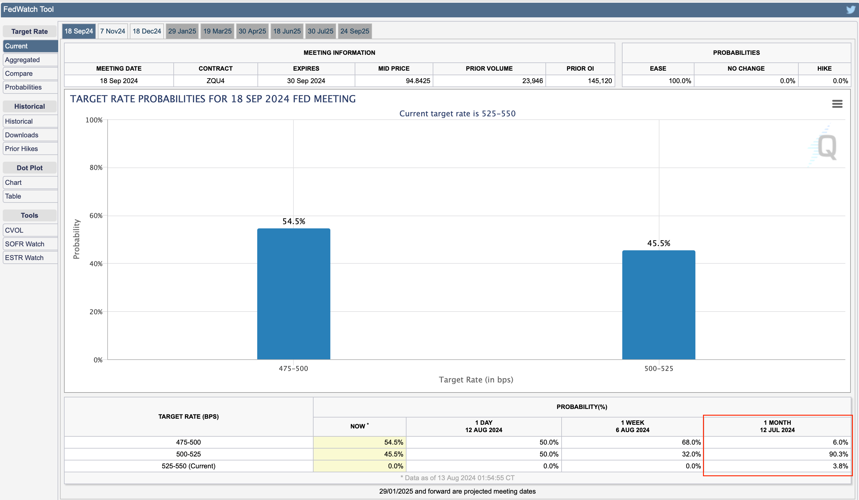 Just one month ago, the market had almost fully priced in a 25bps interest rate cut from the Federal Reserve in their September meeting. Fast-forward to now, we’re looking at expectations of a 50bps cut in September after an unexpected 20bps jump in the US unemployment rate to 4.3%, pushing the US economy into a potential ‘red zone’.