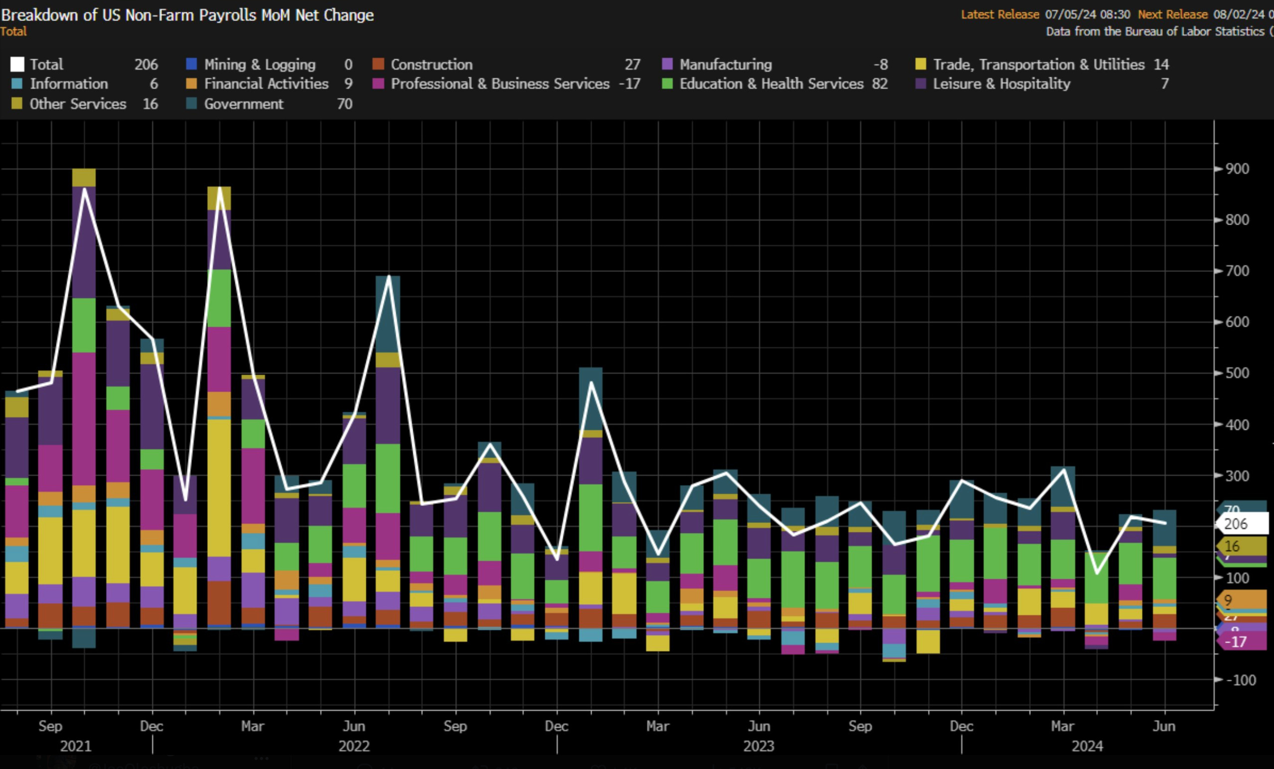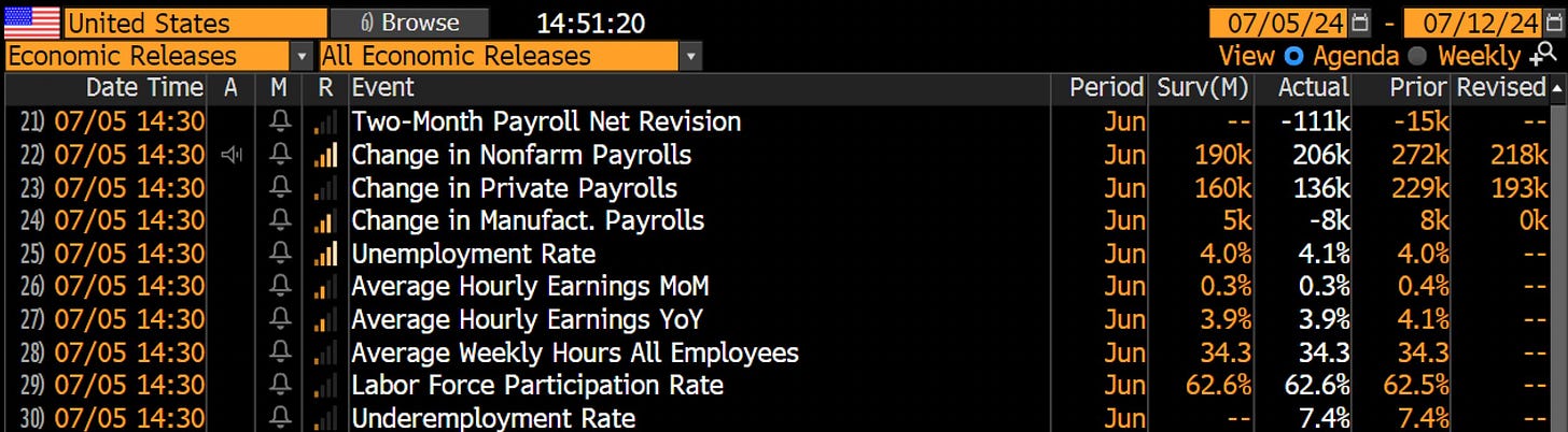 The overall trend shows that the labour market is still cooling. Meaning, all eyes on the Fed this July as there’s both reason to hold and or reason to cut rates.