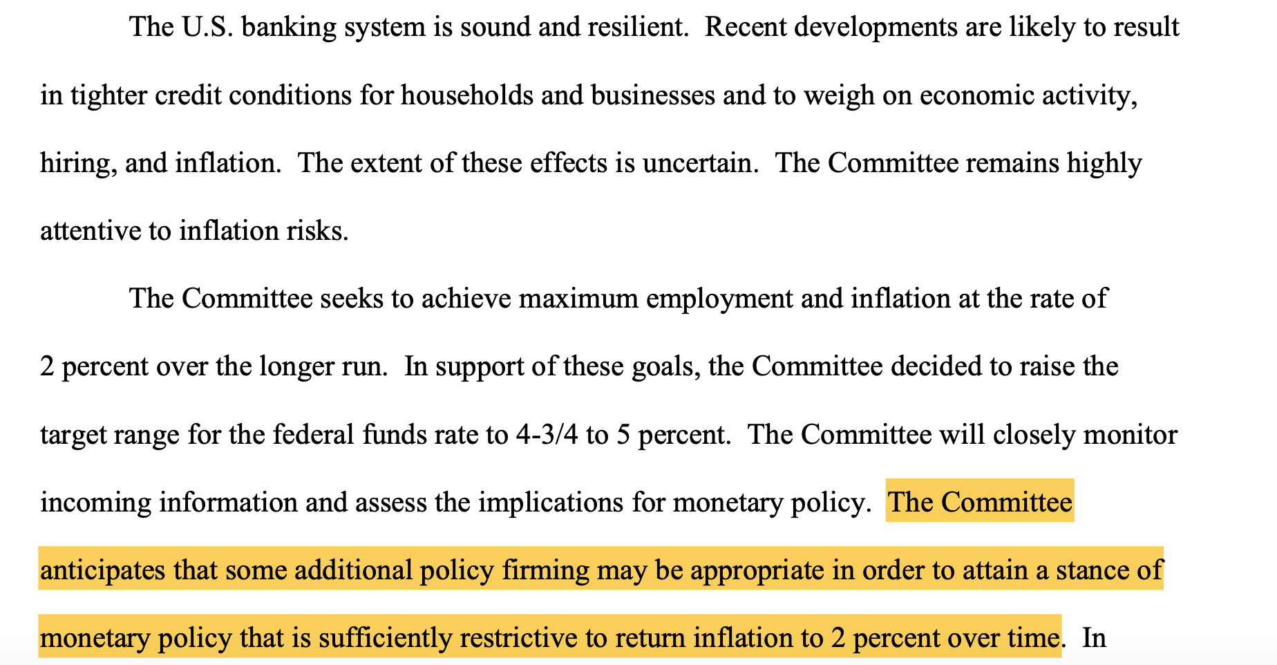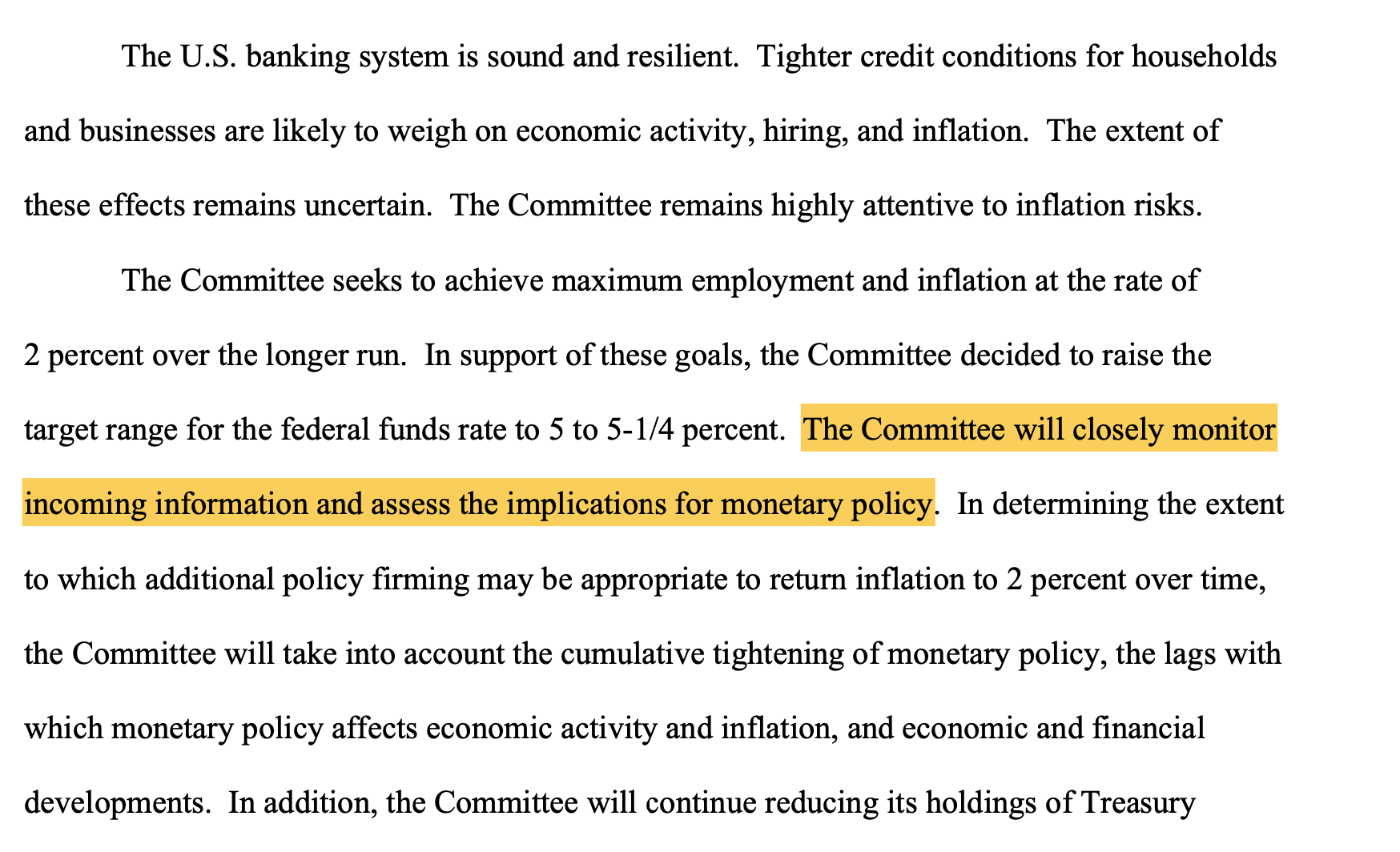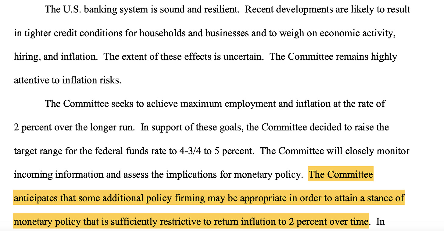 One sentence. That’s all the confirmation we needed to confirm a pause for the Fed and for this to be what I expect to be the last hike of this tightening cycle that we have been on since March 2022.