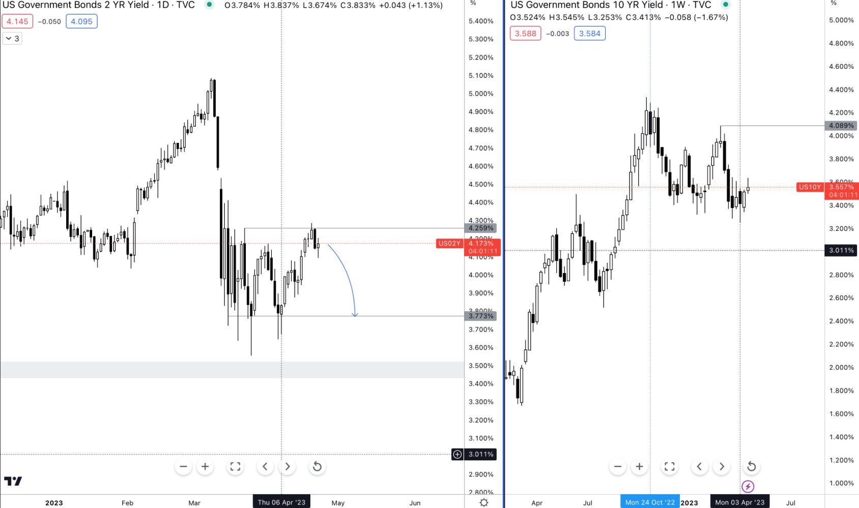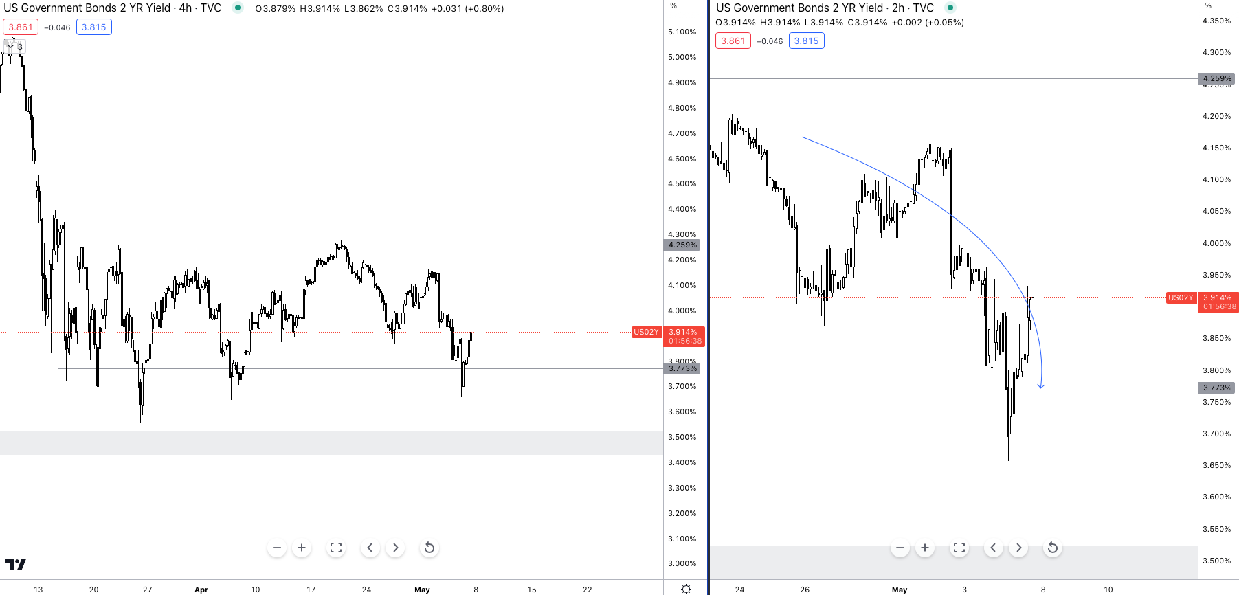 As of right now, the 2y dropped below the analysis I shared with you on the 21st of April