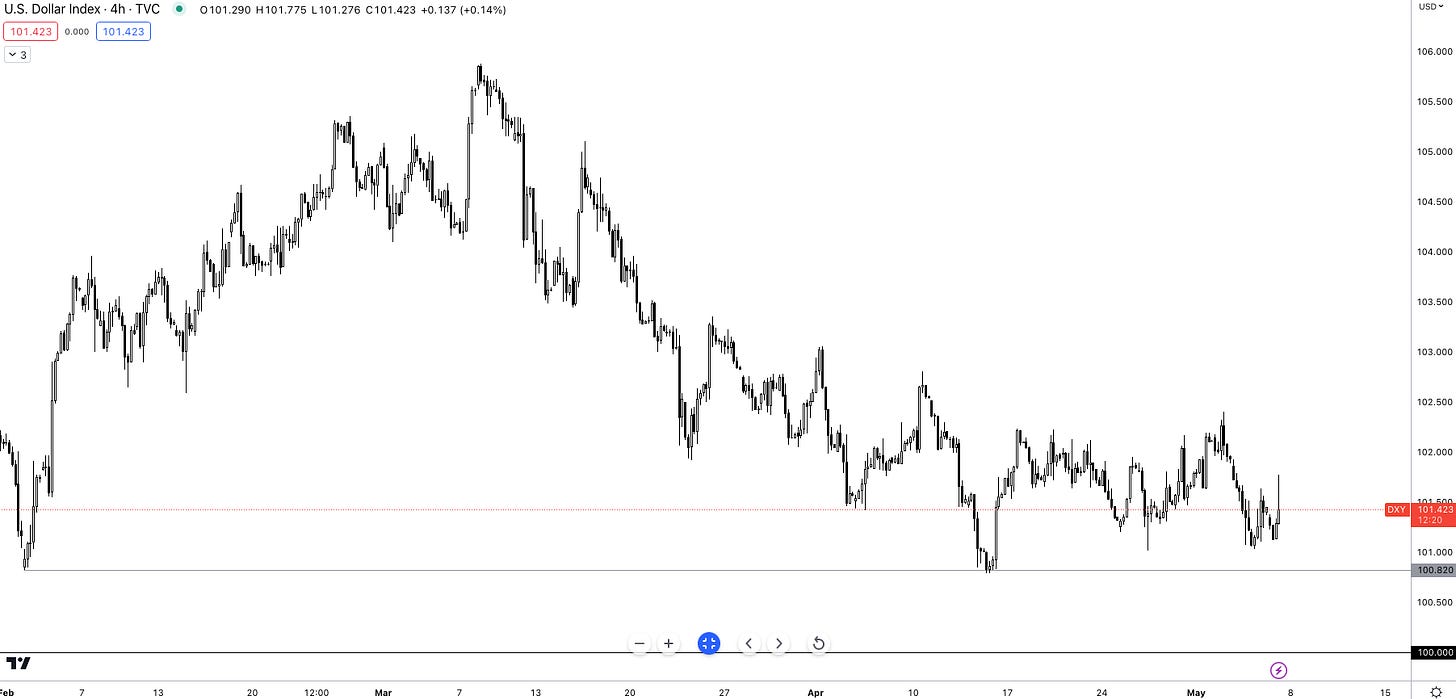 As it stands, the dollar is just above a pivotal price point of 100.820, from a macro perspective, all conviction lines up for a short mid to long term, I’m personally leaning towards a soft dollar throughout Q2.