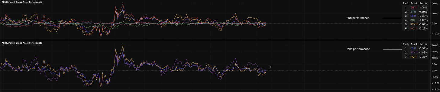 4) Equities have pretty much done NOTHING for the last 20 trading days, we’ve had the curve continuing to steepen, more cuts priced and BETTER growth data yet equities are NOT rallying, meaning there needs to be an extreme in data or pricing to drive equities from here in my view (which again, is unlikely).