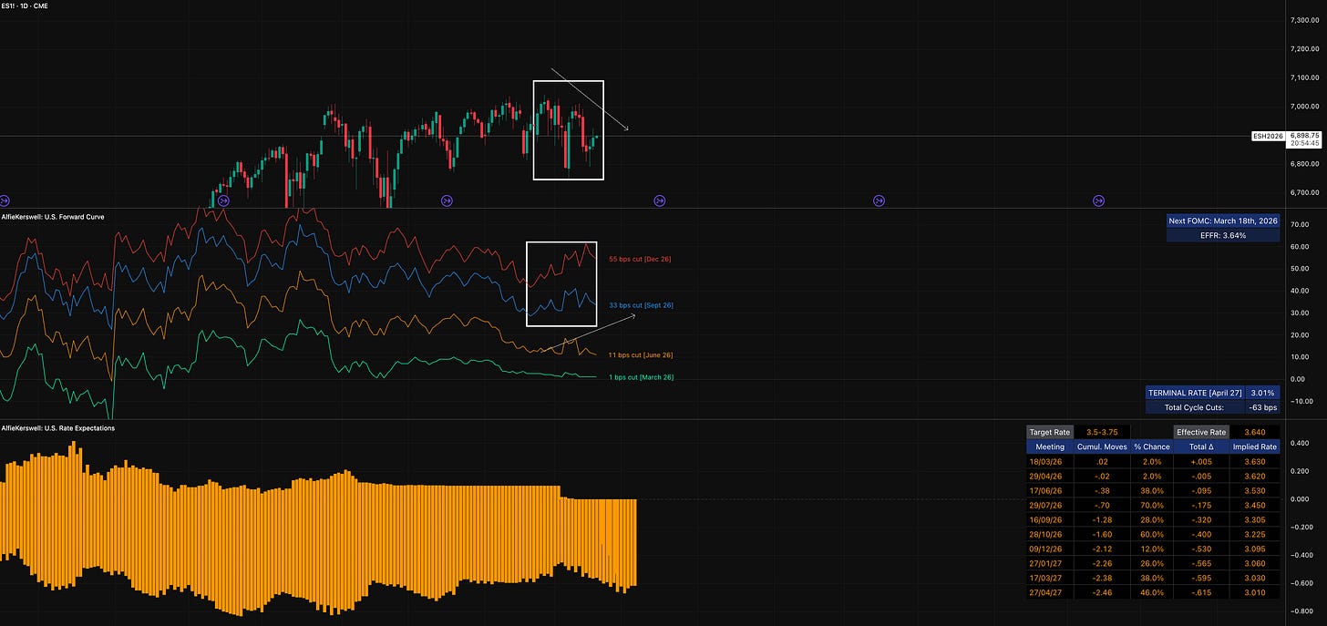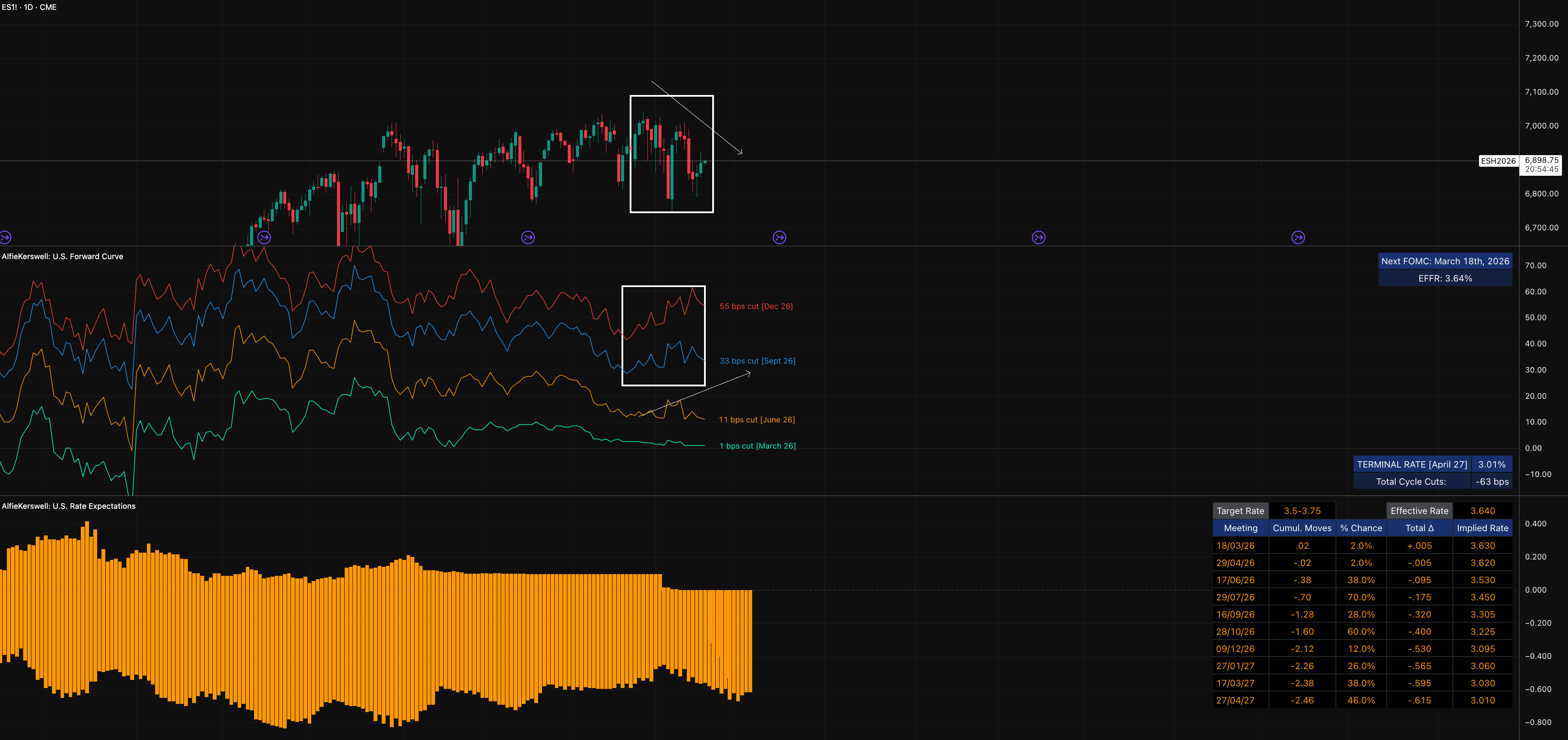 1) As the market prices MORE cuts, ES is moving to the downside marginally. Just like I laid out in the dollar, there is LESS sensitivity to MORE cuts being priced. So unless an extreme is created in rate expectations (unlikely because the pricing for Z6 is fair), more front-end cut expectations will NOT drive equities, but a tightening of expectations could cause an outsized move DOWN.