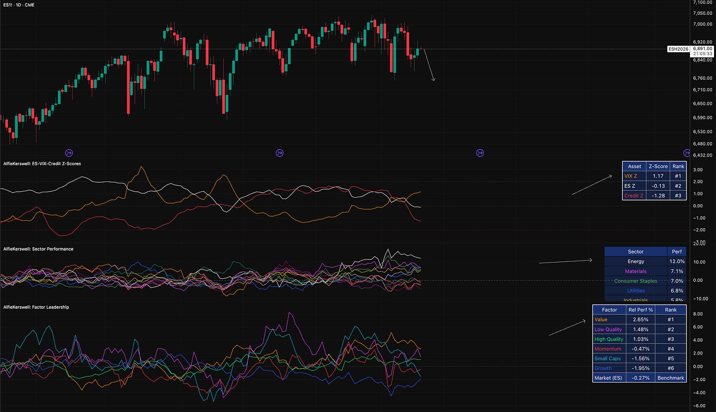 3) On a Z score basis, VIX is trading above +1 (an extreme), all while energy, materials & staples drive equities (not what you want to see in a risk-on rotation). Value has also been the marginal driver in returns, once again not what you want to see if we’re setting up for a leg higher.