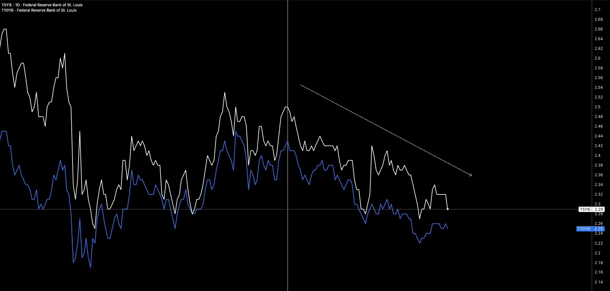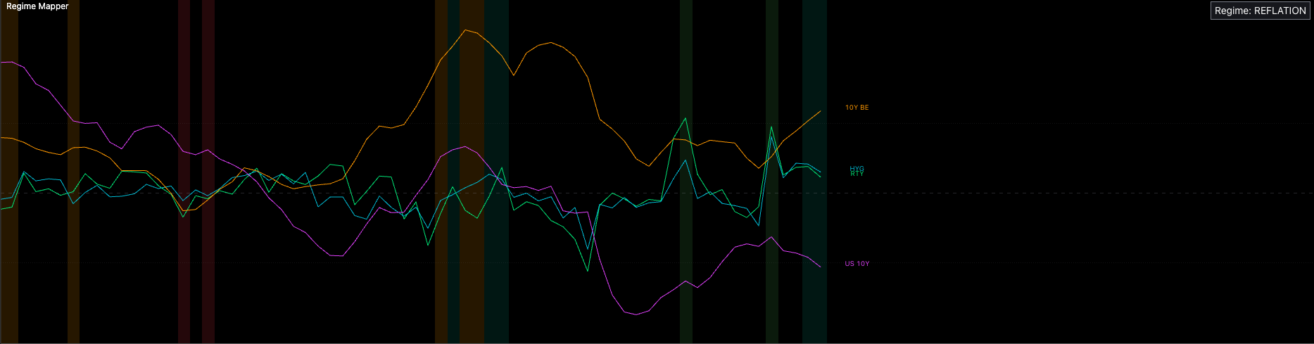 That combination was more risk on. Falling long end rates, improving inflation expectations, tighter credit, and small caps outperforming all at once. Compared to that backdrop, today’s environment is more mixed which helps explain why markets feel heavier even though we’re not seeing outright risk off conditions.