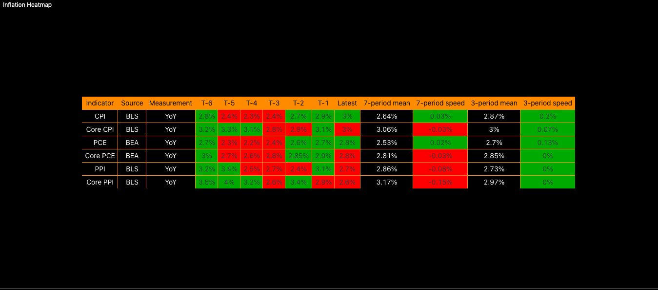 Still sticking with inflation, what I’m more focused on now is how these dynamics filter into the long end, particularly through steepening in 2s10s (we’ve seen steepening across the last few weeks). The last thing you want to do is mistake falling inflation swaps for no inflationary pressure at all. Over the last 3 months, inflation metrics have been running at an average pace of 0-0.2% while the curve continues to price cuts into closer contracts. Zooming out, the 7 month avg speed looks healthier, with most inflation metrics clearly decelerating in terms of speed which is the constructive part of the picture.