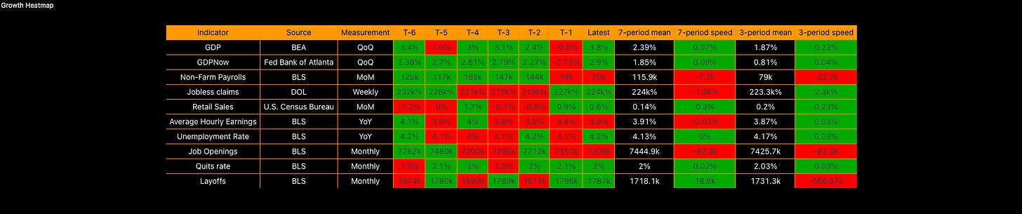 We’re not even close to that setup. In fact, just look at how many growth metrics in the table below are still ticking higher on a 3 period basis in terms of average speed. That’s not what an economy rolling into recession looks like.