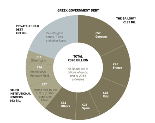 By early 2010, Greece requested for a bailout to help pay back its creditors and received support from an EU-IMF( International Monetary Fund) package totalling €110 billion to rescue Greece from defaults. Following Greece, Ireland, Portugal, Cyprus and Spain all requested bailouts to stay afloat.