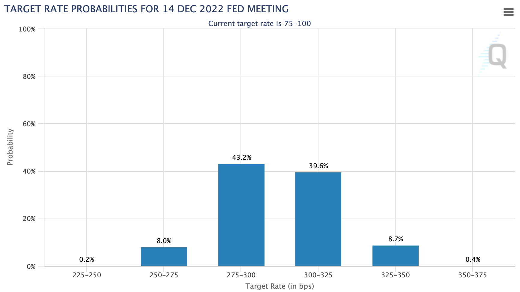 The probability of the Fed Funds rate by December 2022 has shifted towards the 275-300bps range.