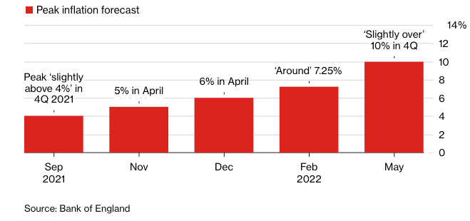 BoE warns of recession and sees inflation reaching 10% by Q4