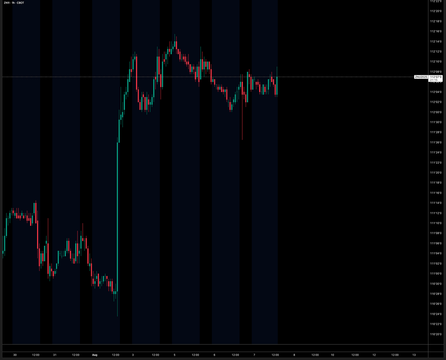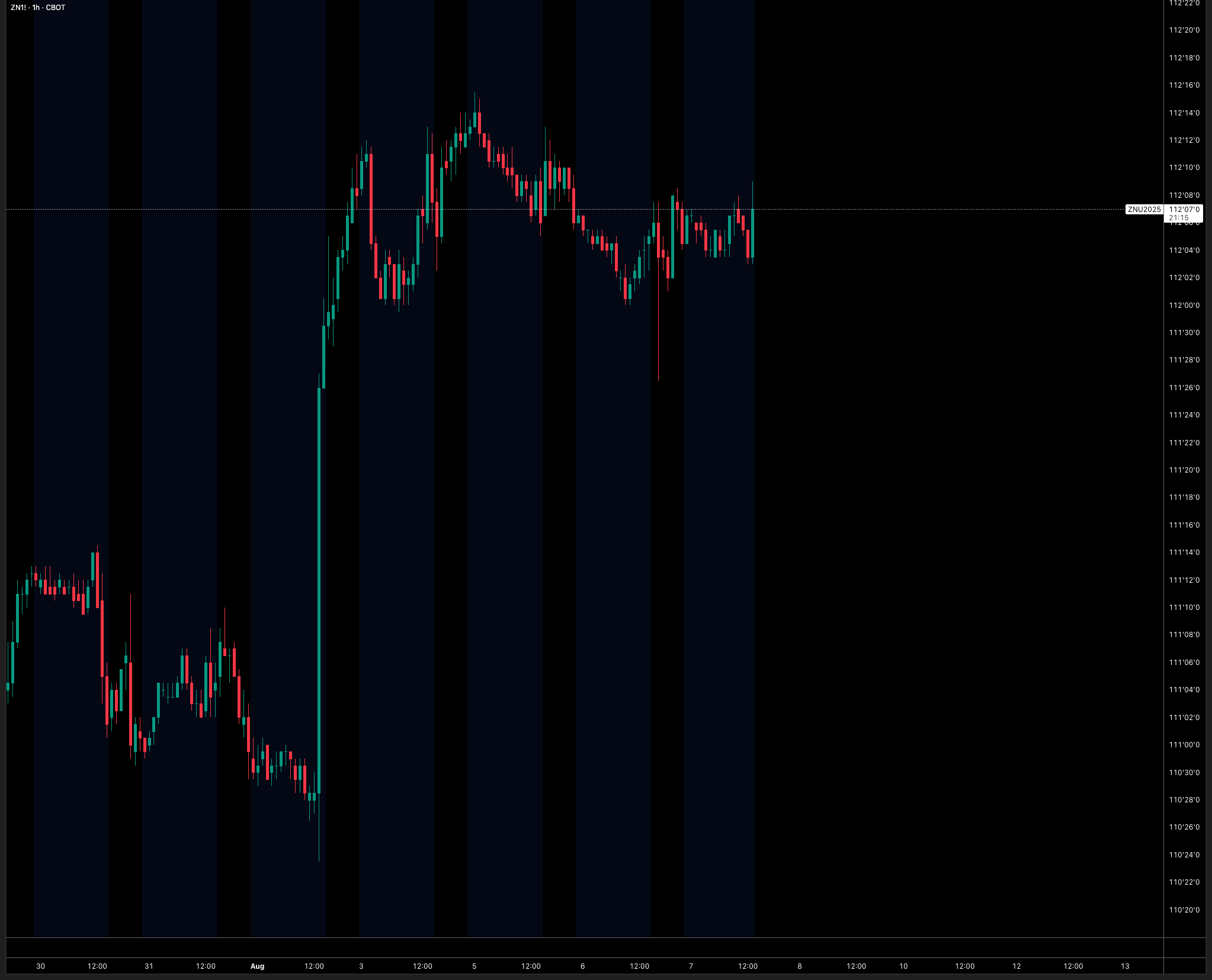 So we’ve seen the NFP print and now the jobless claims print bidding ZN higher, although equities are also moving in lockstep. There’s also a full 25bp cut priced for September, which is only supported by the fact that the labor market has shown some early signs of slowdown. Keep in mind that if the labor market was printing higher recently, the Fed would be silly to cut into inflation, but their hand may be forced (as seen in rate repricing after the jobs prints). It’s not going to be pretty for the Fed regardless, cutting into inflation is a guarantee at this point.
