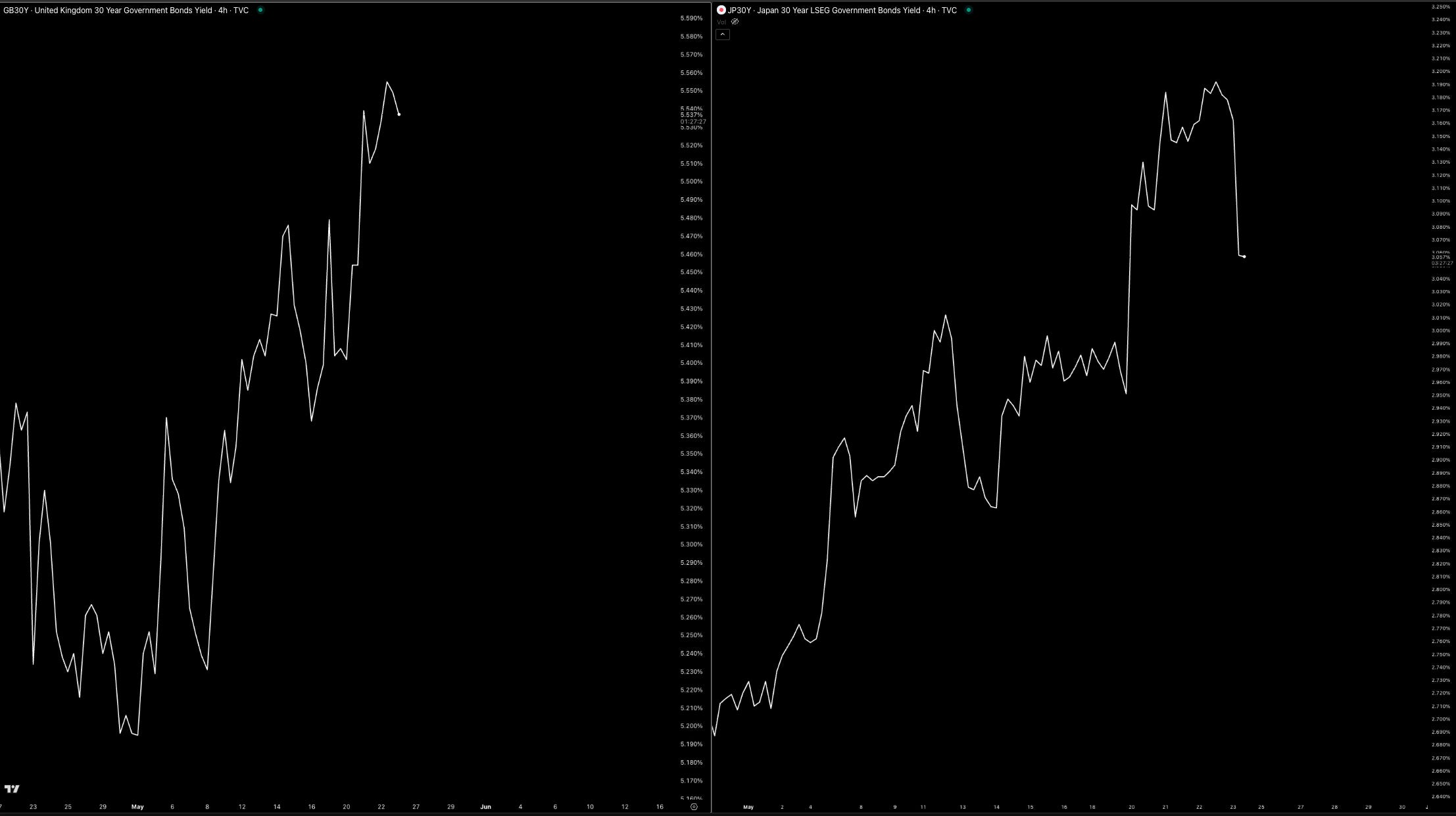 The US aren’t the only nation seeing their 30Y at extreme levels, Japan and the UK joined the group. The UK 30-year yield is at c.5.5% while Japan’s 30-year yield created an all time high at 3.1%. So, why is everyone focused on the US’ high Treasury yield but not the UK’s or Japan’s?