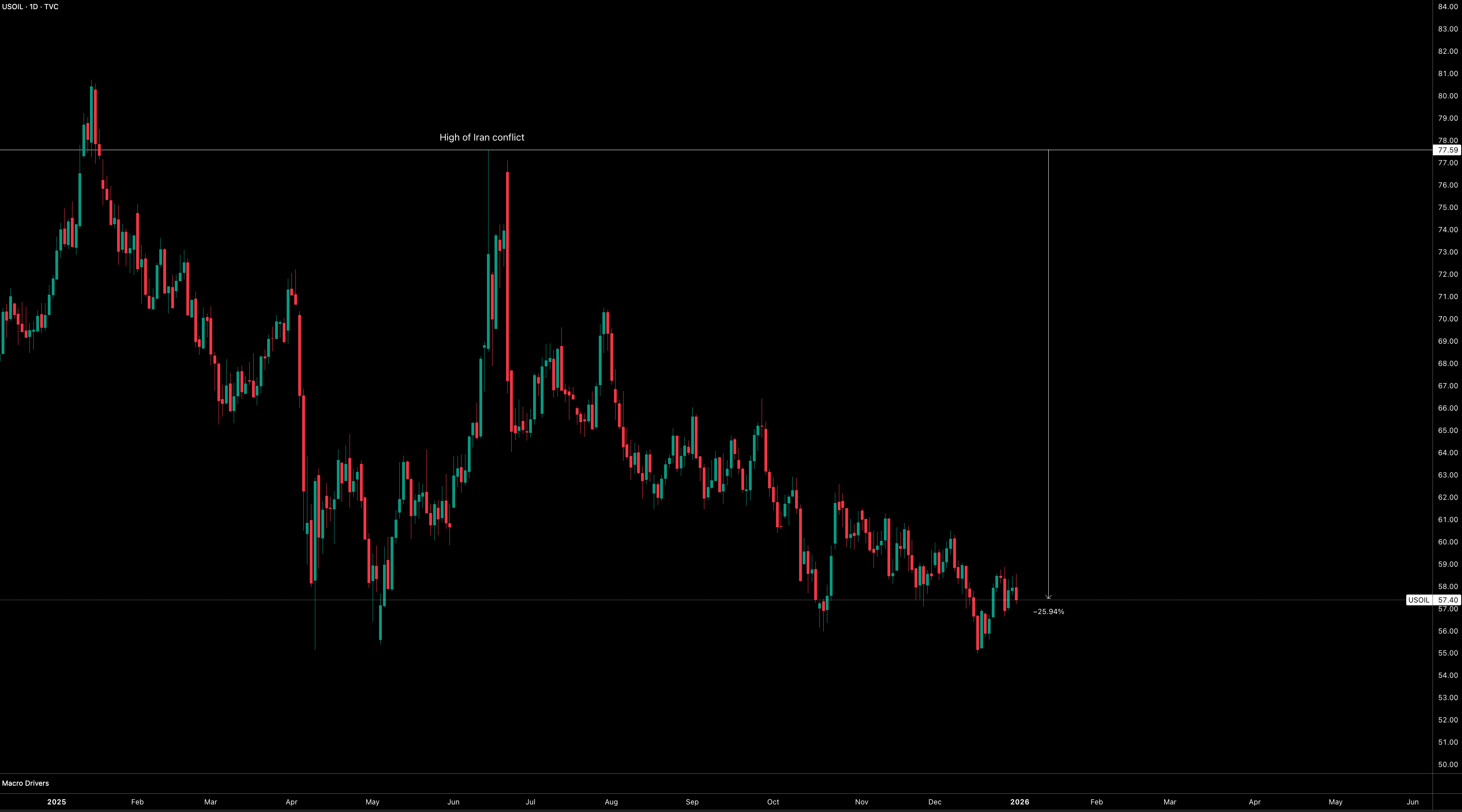 Crude remains well below the highs seen during the Iran conflict in June. Policy pressure to keep energy prices low continues to cap upside, and looser discipline from OPEC has increased effective supply. Still, energy volatility remains a latent risk rather than a resolved factor.