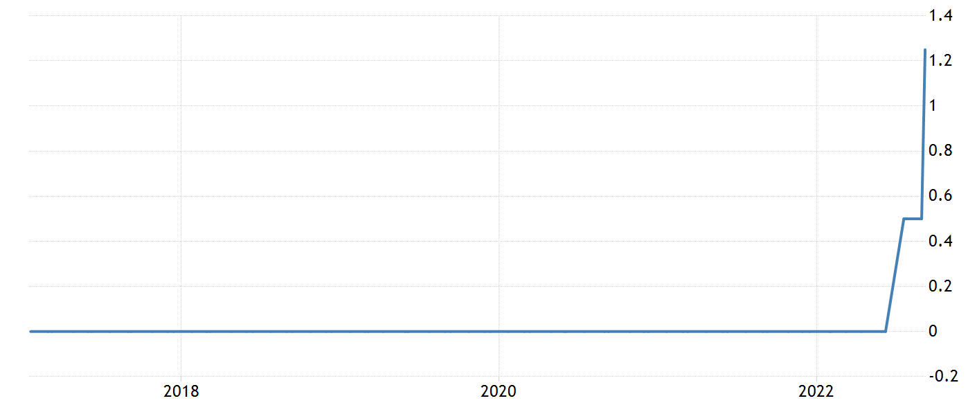 Since the GFC of 2008 we have become immune to seeing Euro area interest rates so low across all three rates; however, yesterday we saw an unprecedented hike in interest rates with rates now sitting at 1.25%!