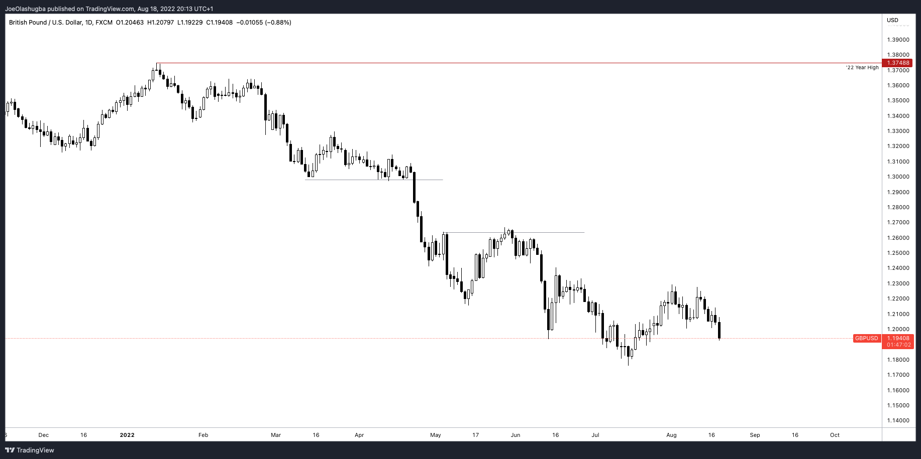 As of today, cable rates sit at 1.19, at the start of the year rates were around 1.37 which is a massive 18% depreciation in the pound, mainly due to sentiment and other factors such as interest rate differential when compared to the U.S. The first thing that comes to mind in these situations is a carry trade, between a low rate/yielding country and a higher rate/yielding country as that presents the best opportunity for this type of trade. With the pound, although the opportunity is there it wouldn’t be the strongest of trades for one to look at moving forward. As the inflation figure continues to rise and conditions materially weaken in the Uk we’ll see how the BoE position its stance on further rate hikes. If you ask me? We’ll see them slow down and cut rates sooner than what’s expected or been said.