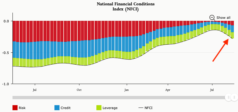 Looking at the previous week just further re-emphasises the fact that conditions are loosening when in actual fact, conditions should be getting tighter as the Federal Reserve hikes interest rates.
