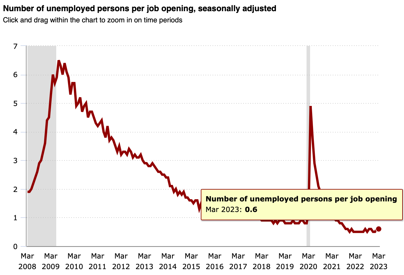 If you were wondering how tight the U.S labour market is, the number of unemployed people per job opening is less than 1. The tightest in over a decade. So a rise to 2, 3 even 4 may be what the Fed needs to see as a confirmation that the tightness in the labour market is starting to normalise to economic conditions.