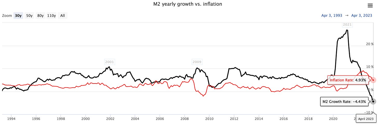 I find myself often observing and analysing the M2 supply growth change to determine where inflation is headed as M2 supply leads inflation.